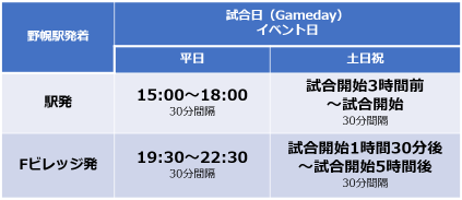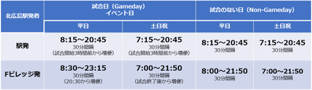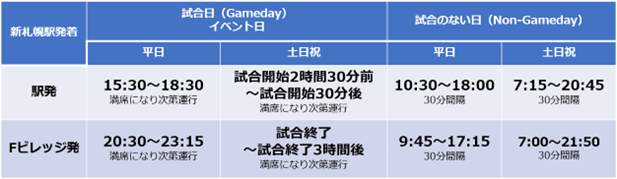 株式会社ファイターズ スポーツ&エンターテイメントでは、2023年3月30日に開業する北海道ボールパークFビレッジ(所在地:北海道北広島市、以下「Fビレッジ」)のシャトルバスについて、運行詳細が決まりましたのでお知らせいたします。