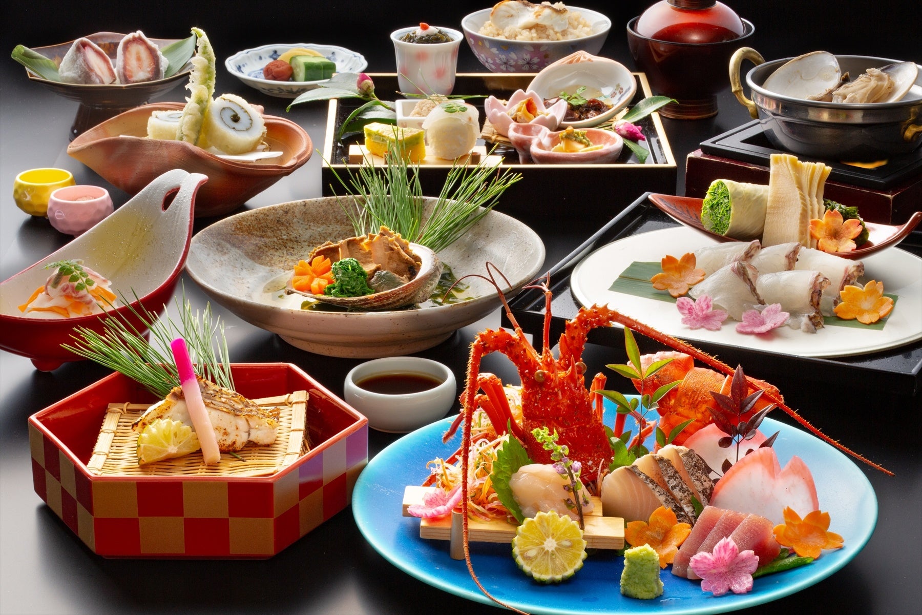 渦潮の潮流で育った鳴門鯛のしゃぶしゃぶや鯛飯の他、伊勢海老・鮑などの高級食材、季節の旬菜も 心ゆくまで味わえるお祝いにもふさわしい寿料理。