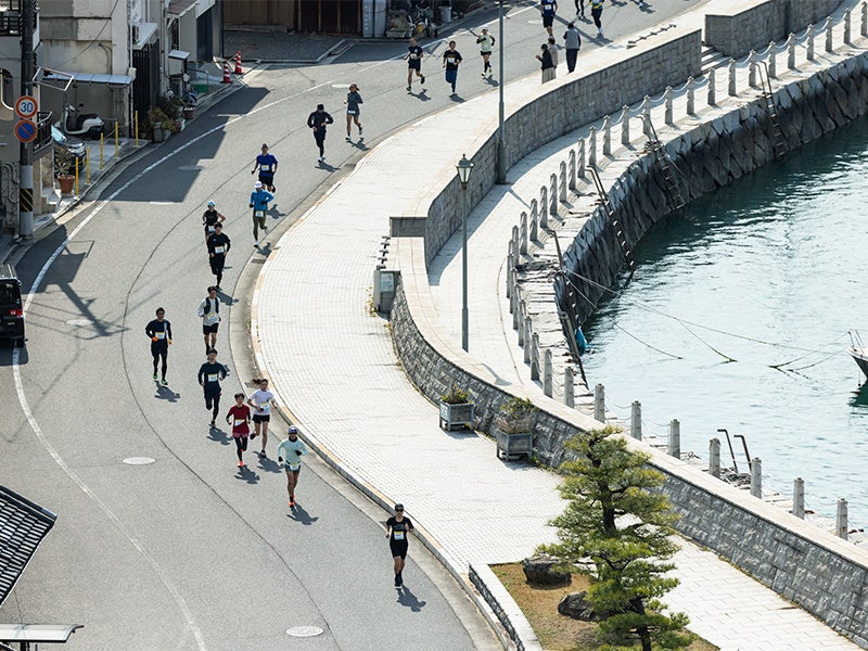 「せとだレモンマラソン」は、瀬戸内海の海岸沿いやレモンの木々を通り抜けながら穏やかな島の情景が楽しめ、ハーフマラソンとシーサイドラン(約9km)の2種類のコースを設定しています。コンセプトのひとつに「環境負荷低減へのコミットメント」を掲げており、大量のゴミが出るマラソン大会運営の解決策として、環境負荷を抑える先進的な運営方式を採用した「湘南国際マラソン」並びにそのサポートをしたザ・ノース・フェイスと提携をし、「マイボトルマラソン」を成功させました。