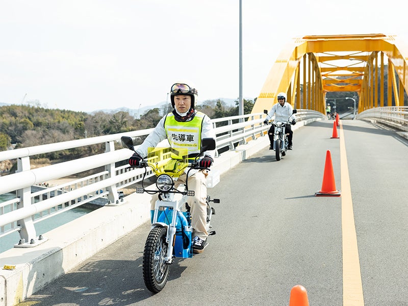 ③ 先導車には、ゴールドウインが独占パートナー契約締結をしたスウェーデンのプレミアム電動バイクメーカー「CAKE(ケイク)」の「Makka range」を採用