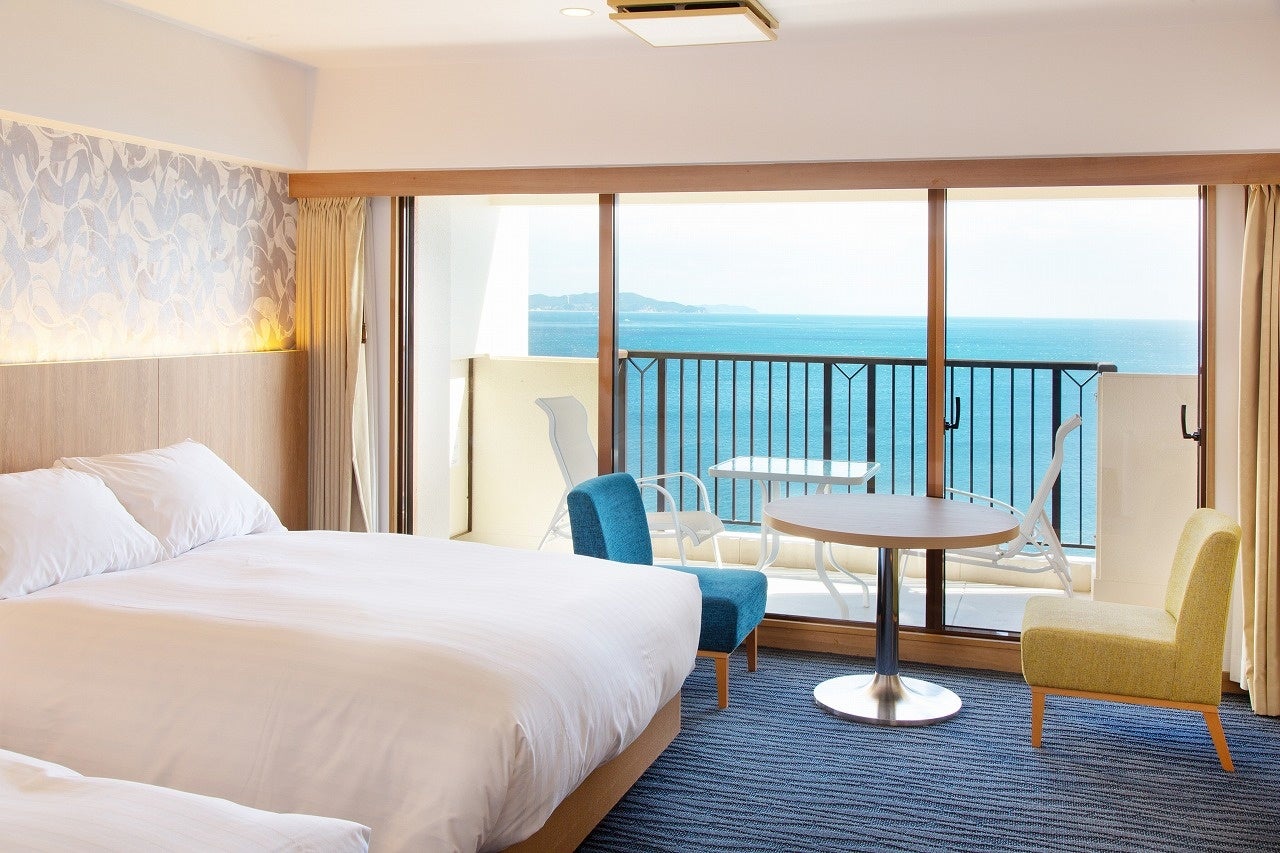 海を見晴らす洋室、徳島の匠による「阿波藍ルーム」など、旅のスタイルで選べる客室は15タイプ。