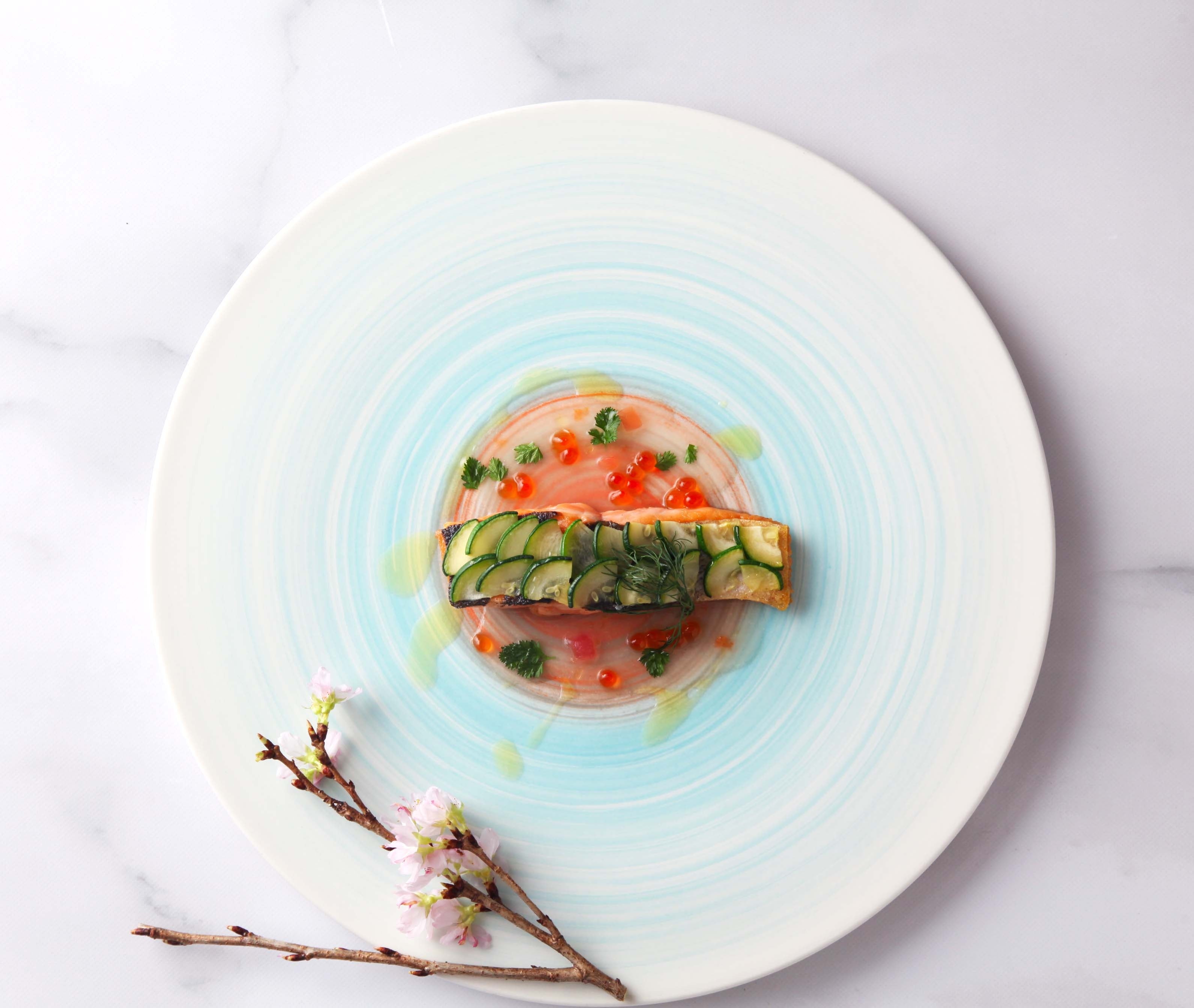 - 淡路島産サクラマスと阿波野菜のソテー、うろこ仕立て