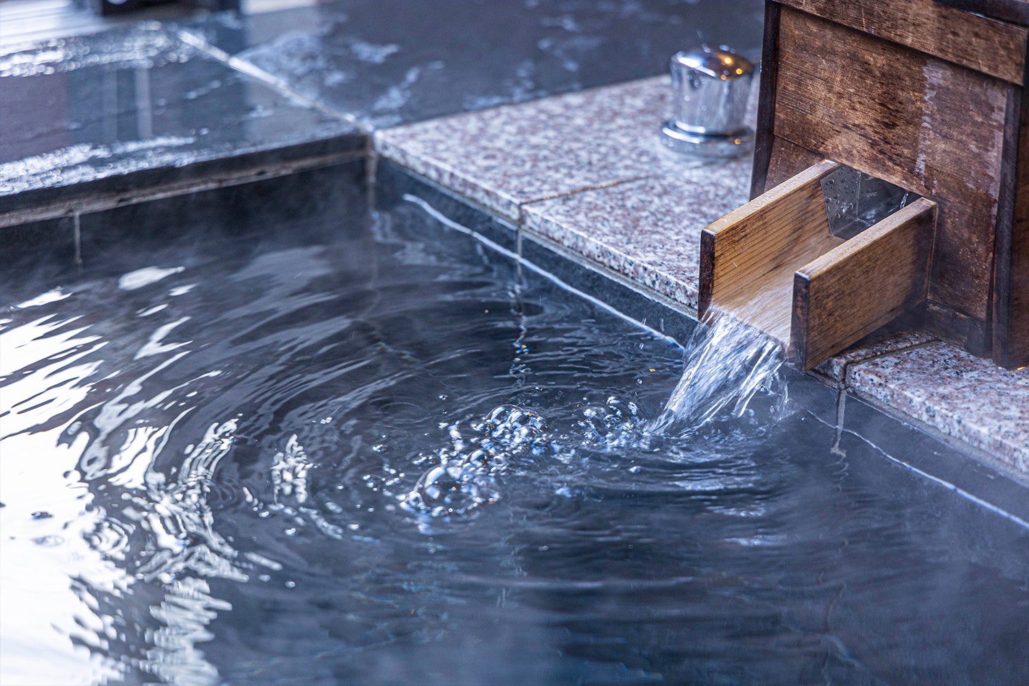 2種の自家源泉を使用した客室温泉と大型の貸切温泉をご用意。