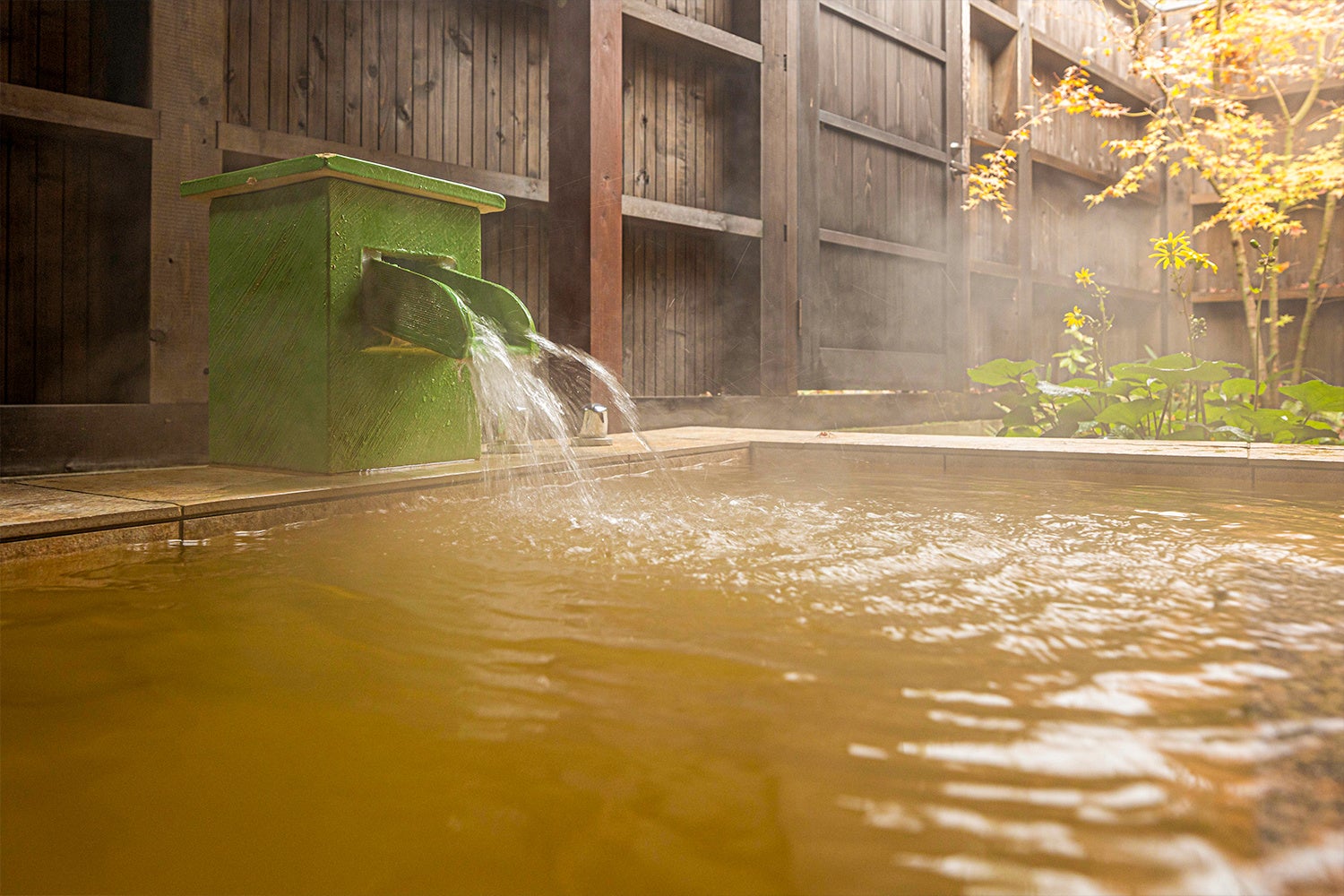 泉質はメタケイ酸を豊富に含む単純泉と、関西エリアでは希少な茶褐色の塩化物泉のお湯となります。