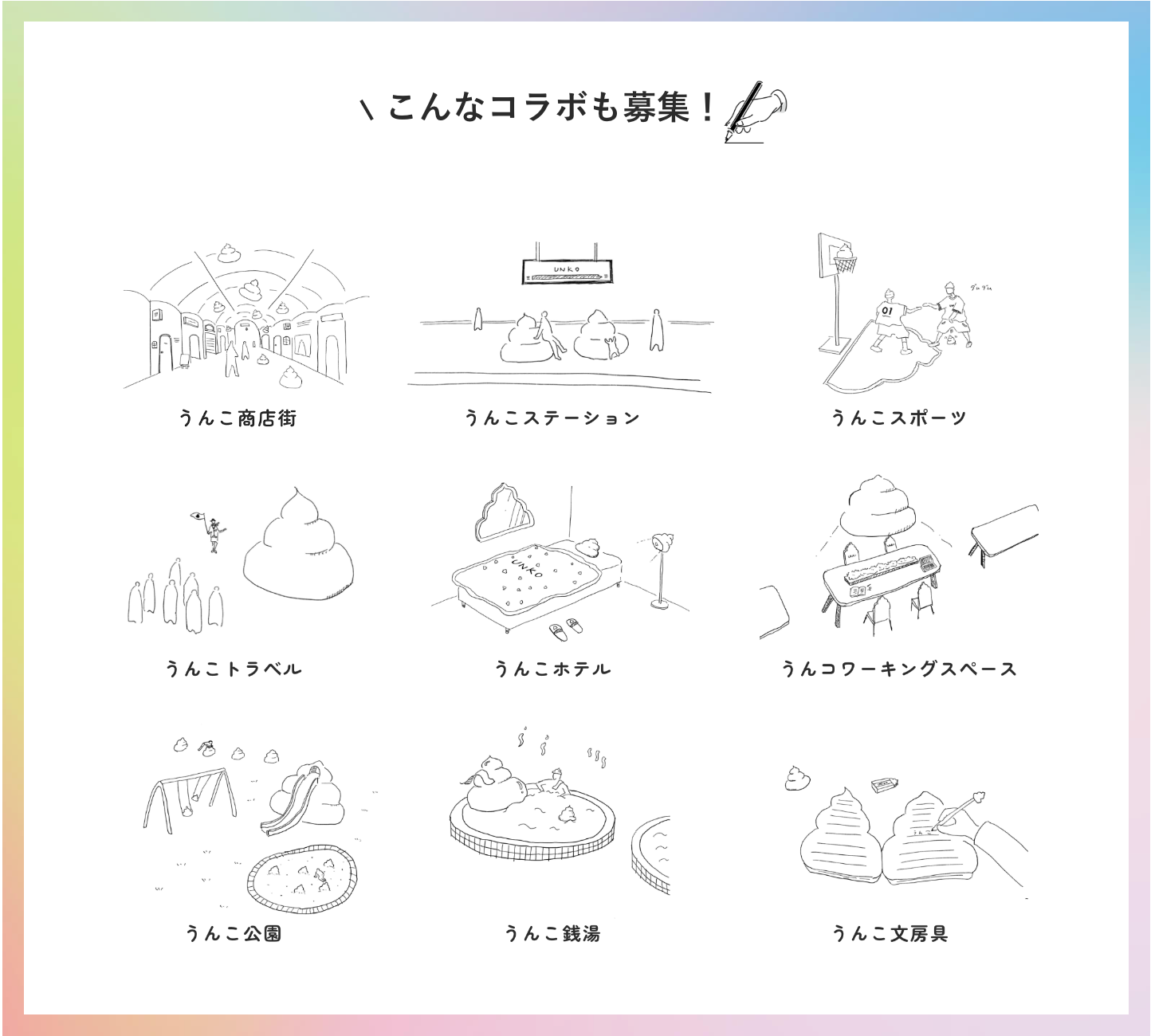 常設店に限らず、一緒にたのしい施策を実施するパートナーを募集しています。例えば、「うんこステーション」「うんこ公園」「うんこホテル」など…!?
