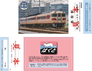 白うさぎのデザインが入った特急『はくと』のヘッドマークイラストや写真を盛り込んだ西日本懐鉄入場券を発売中。(1枚150円/12月31日まで)