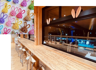 もうひとつの白兎伝説の地・八頭(やず)町の「うさぎテラス」では3月3日限定でブックカフェ、無料ガイド、「うさぎ結び」水引ワークショップ(有料:500円)を開催。また「うさぎ参り」(無料)にご参加いただくと「うさぎ結び」を先着20名様にプレゼントします。