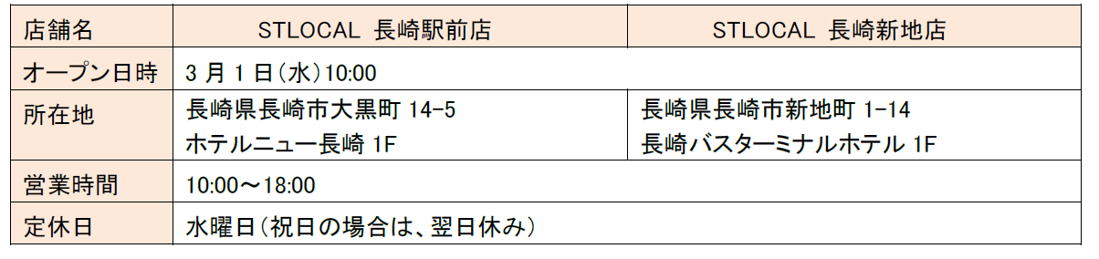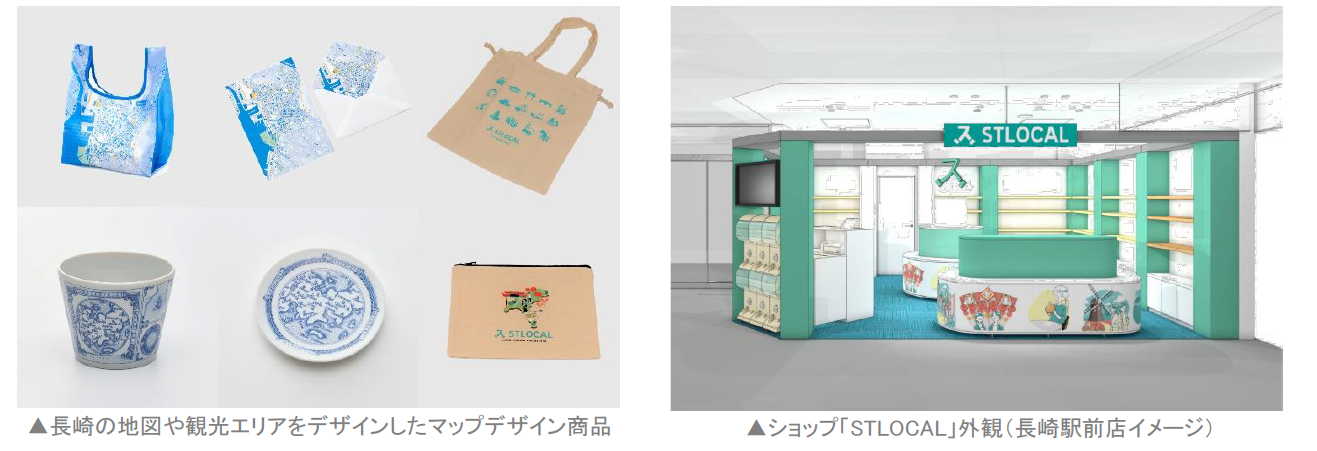 今回はさらなる「旅の想い出創り」をサポートする新たなサービスとして、長崎市内に初めてのショップ「STLOCAL」をオープンします。ショップ「STLOCAL」は、観光客が旅の前と旅の後にお立ち寄りいただけるよう、長崎駅前と空港バスが発着する交通拠点に2店舗(長崎駅前店、長崎新地店)出店し、長崎の地図を「地図柄」としてデザインしたステーショナリーや雑貨、長崎市の各観光エリアをデザインしたSTLOCALオリジナルグッズなどのマップデザイン商品を販売します。