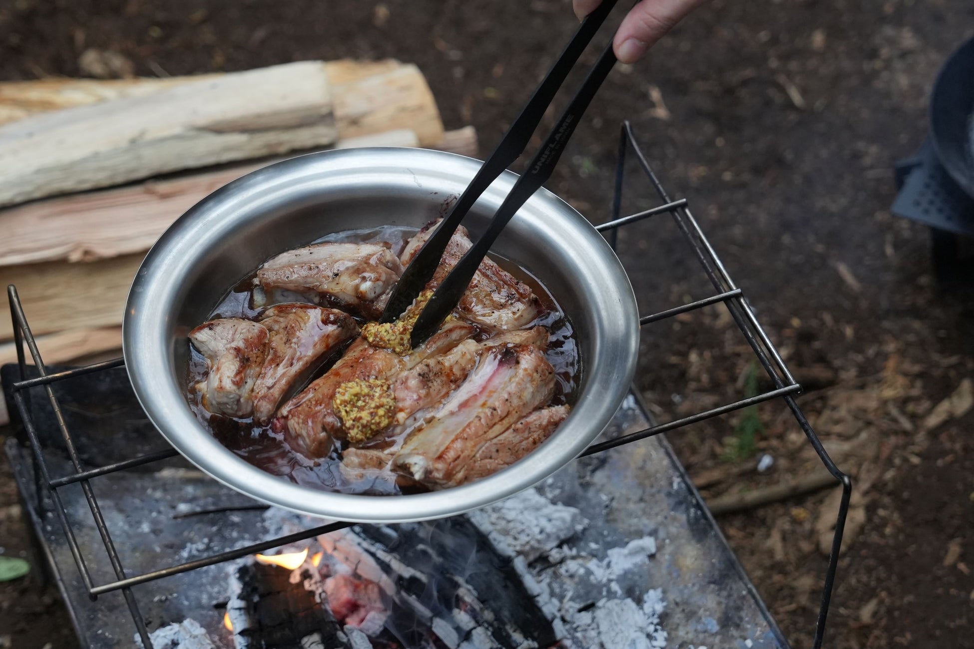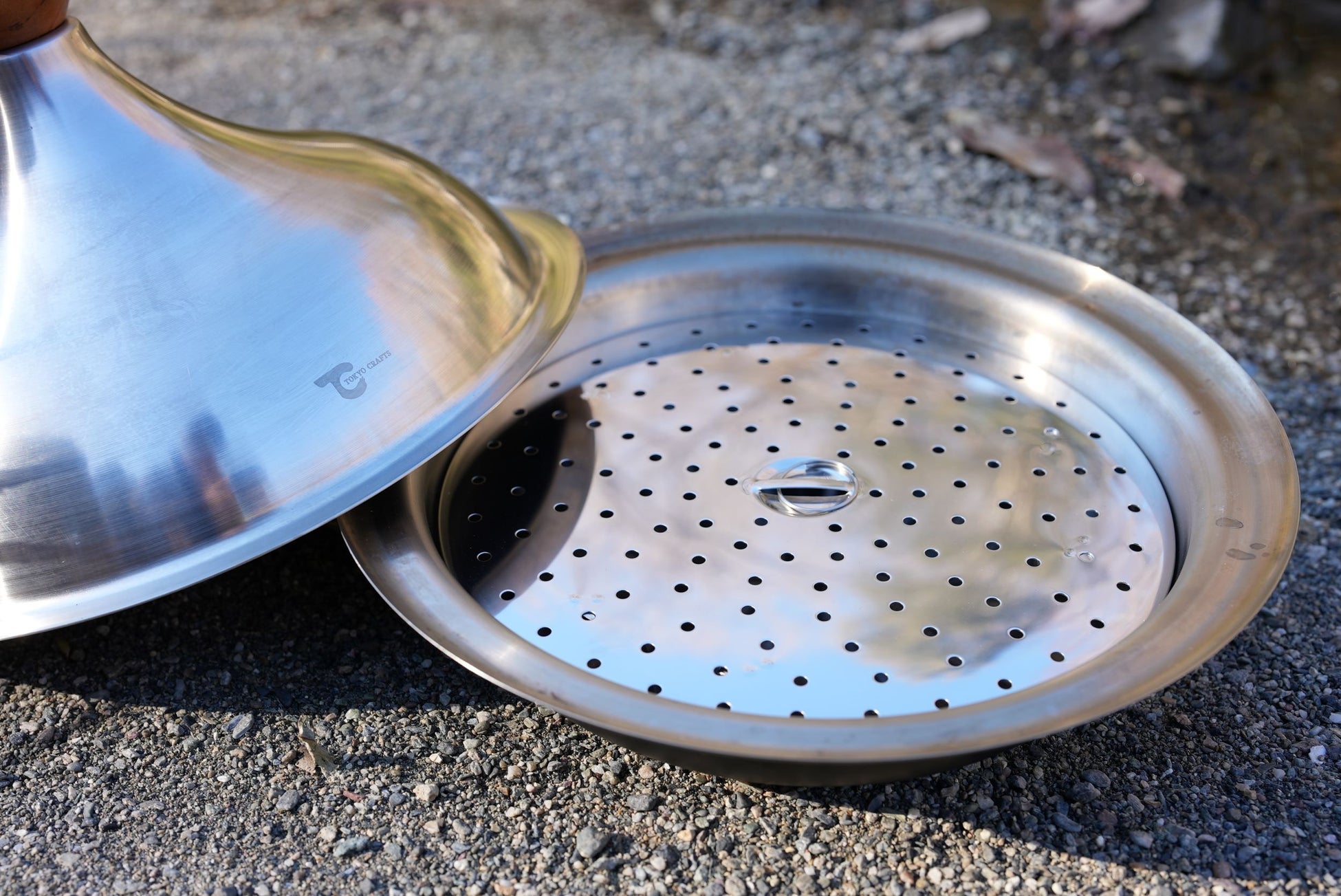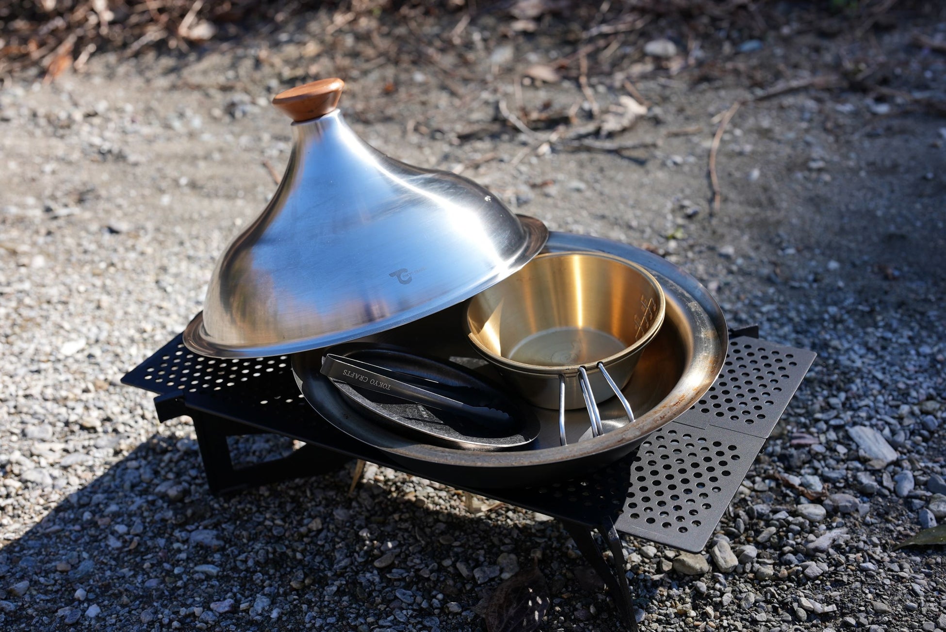マルポットや20cmサイズの鍋やフライパンにピッタリとあう、使いやすい大きさ。蒸し料理や燻製を楽しむことができるほか、湯切りや、熱い料理をそのままテーブルに運ぶことができるなど、便利なアイテムです。マルポットと同じく燕三条で製造されたステンレス製で、錆びにくく、ニオイもつきにくいため保管もしやすいのが特徴です。また、鍋の底面が傷がつきにくいようにプレートの足部分には丸みを帯びる構造になっています。ひとつ持っておくとキャンプ料理がさらに楽しめます。