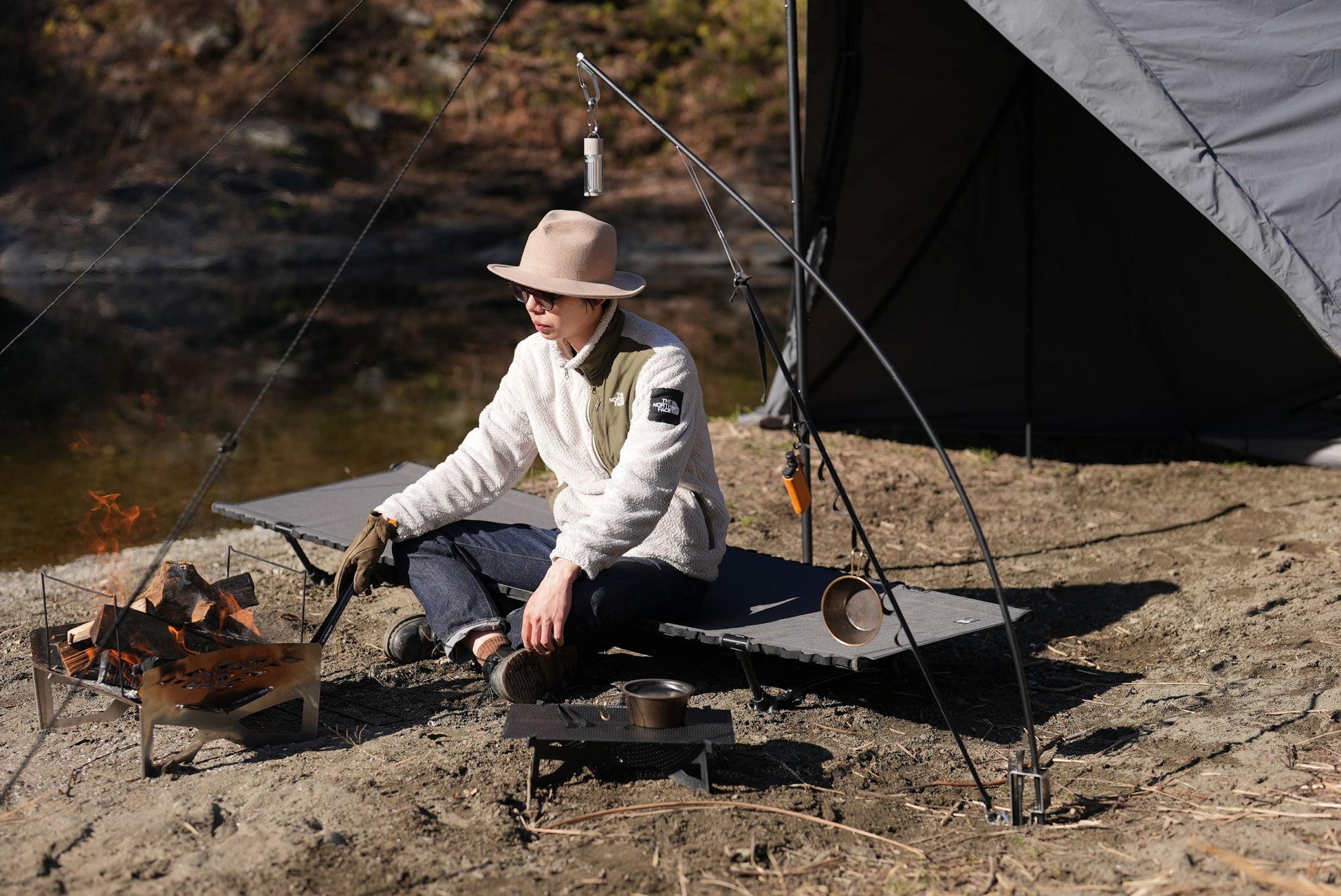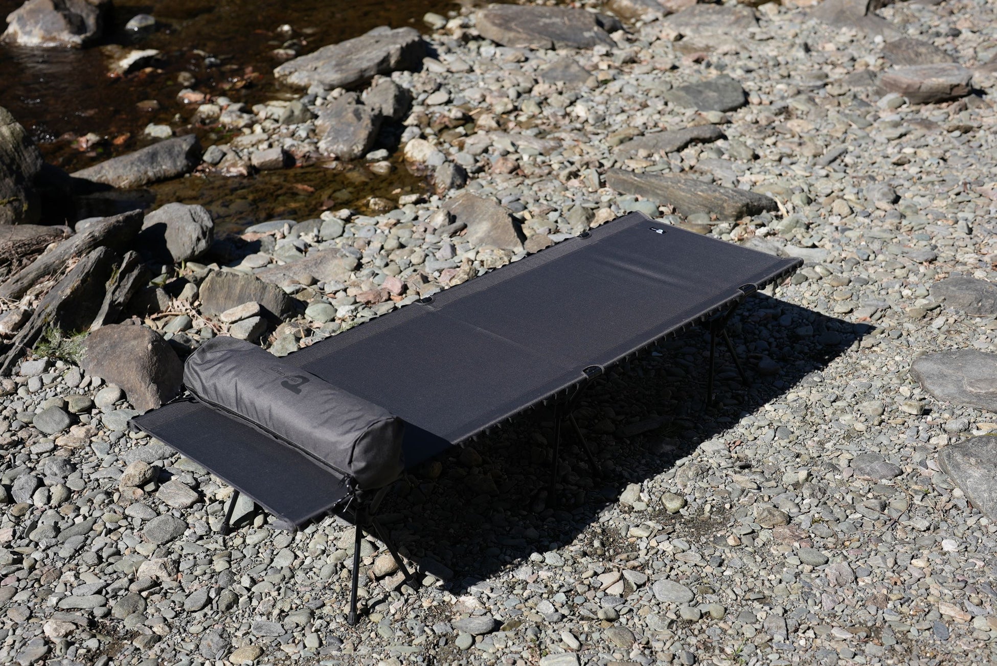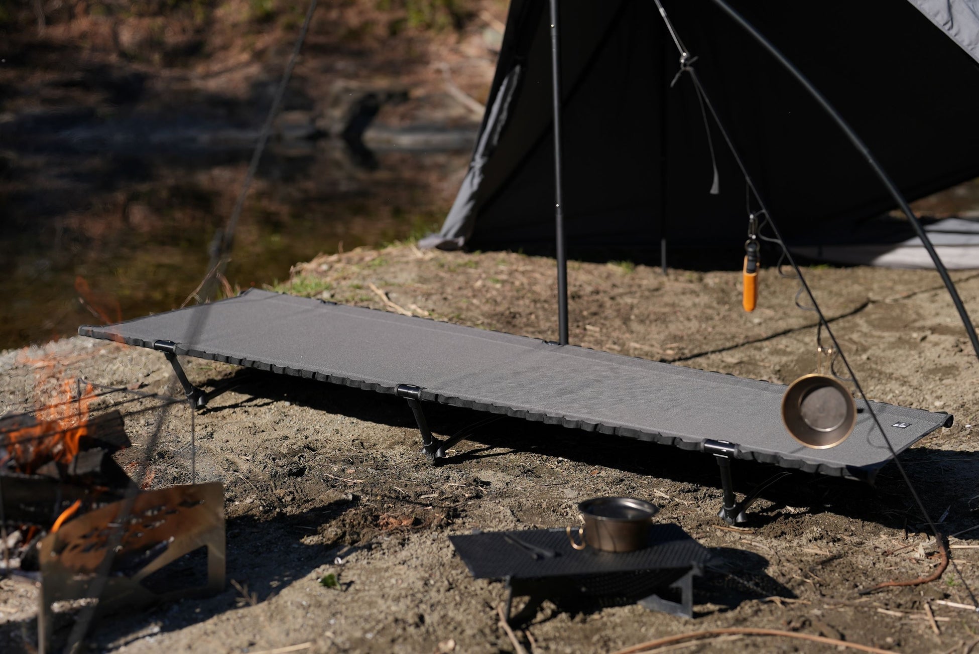ハイ・ローの2wayスタイルに切り替え可能で、両側にウェビングシステムがついており小物のハンギングが可能です。ポールスリーブの内側にメッシュを貼ったことで軋み音を軽減しており、キャンパーを快眠に導く工夫が施されているなど、キャンパーの心をくすぐる機能性コットに仕上がりました。
