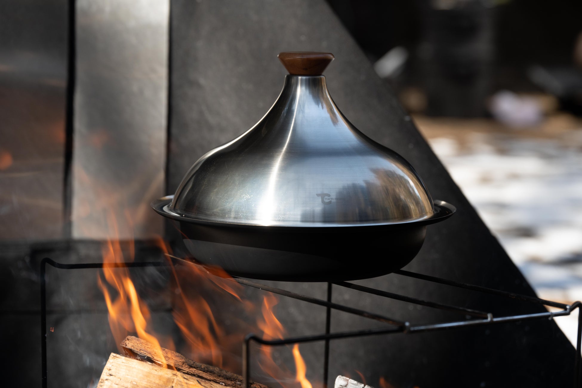 とんがり帽子のような見た目も可愛い万能鍋が登場。特殊な蓋の形状はただ可愛いだけではなく、少ない分量で美味しい料理を作ることができるように計算された優れもの。蒸気が循環し野菜や肉に含まれる旨味や栄養素が凝縮され素材本来の美味しさが楽しめます。煮込む、焼く、炒めることができ、オプションのスチームプレートを使えば、蒸し調理や燻製の幅が広がります。
