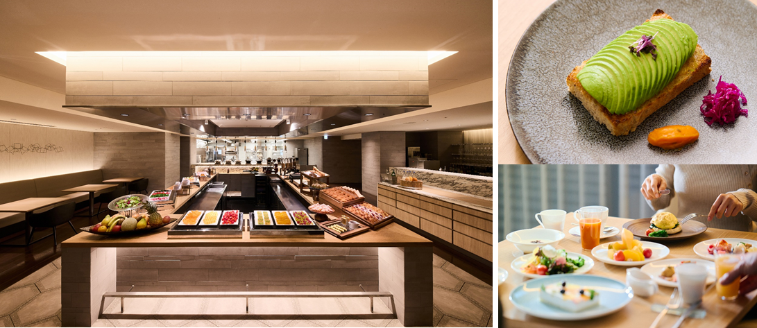 約3年ぶりの復活となるビュッフェには、ホットミールやサラダ、プラントベースのメニューのほか、「だし巻きサンド」をはじめとしたパン、フルーツ、コールミート、ヨーグルトなど、様々なライフスタイルに合わせてお選びいただける幅広いメニューを揃えました。