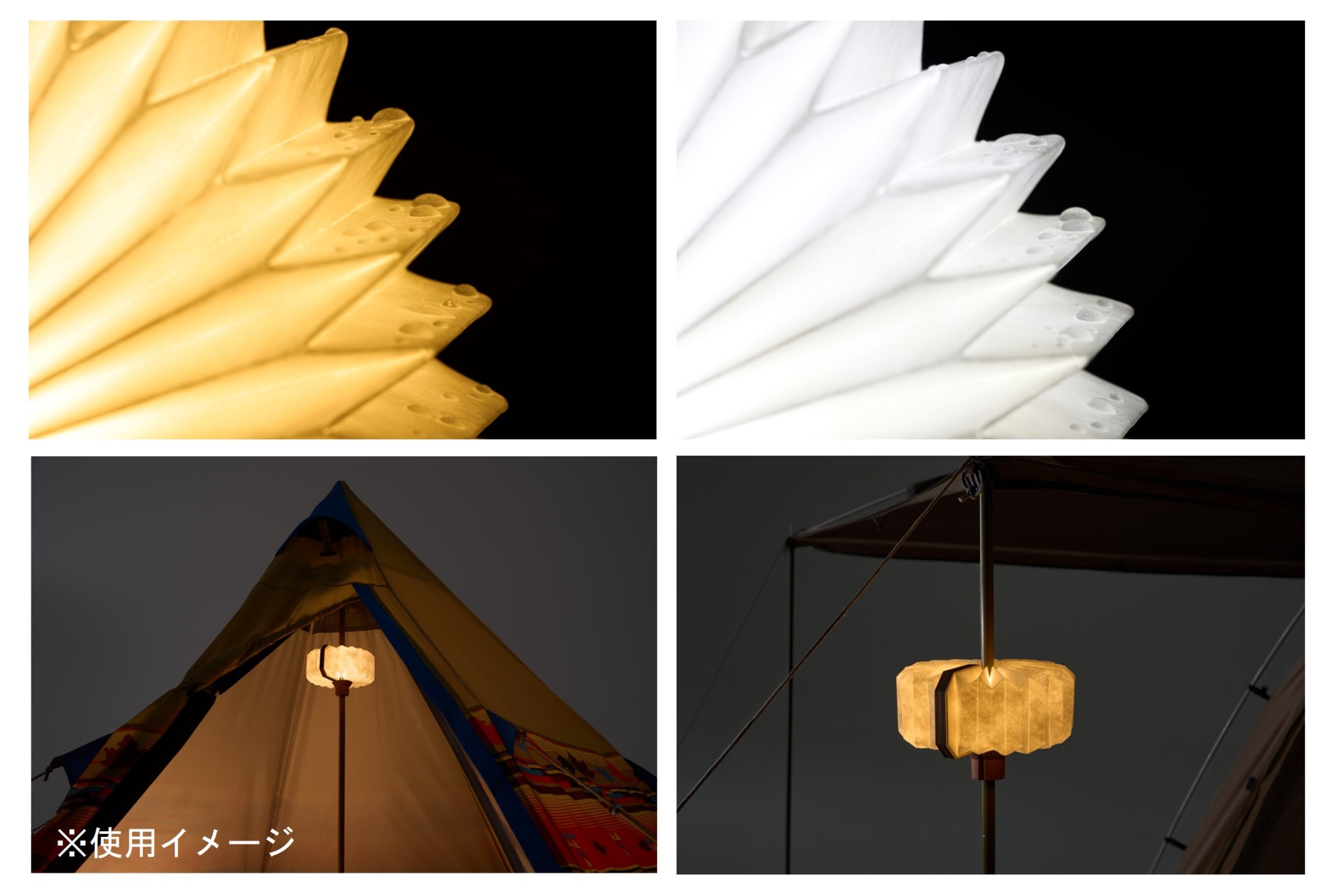空間を包み込むように照らす暖色と作業に適した白色、さらに暖色と白色が交互にやわらかく点灯する「ゆらめきモード」の搭載しており、アウトドアシーンだけでなくご家庭のインテリアの一部としても活躍します。