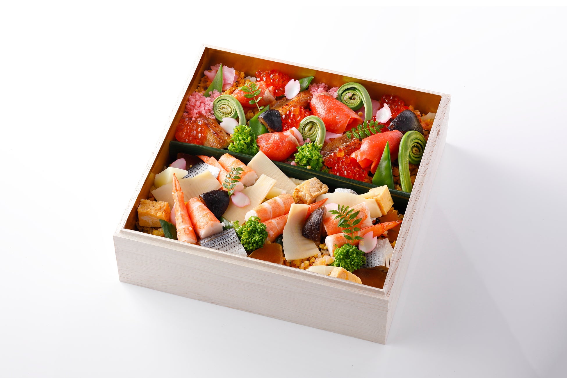 海老、小肌、穴子など贅沢三昧の魚介に加え、春の訪れを感じる旬の食材をふんだんに使用した2種のちらし寿司をご用意。さらに酢飯には長期熟成の酒粕のみを原料として使用し、ゆっくりと時間をかけ丹念に仕上げられた風味豊かな赤酢と、100年の歴史を有する国内生産量日本一を誇る大分県産の色鮮やかなサフランを使用し、厳選具材の魅力をさらに引き立たせます。