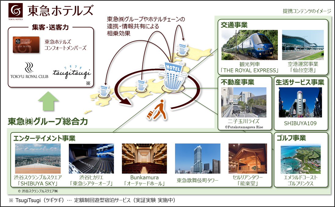 東急ホテルズ&リゾーツは東急と一体となり、グループの総合力を活用し、Bunkamuraや東急シアターオーブ、SHIBUYA SKYなど、文化・芸術・エンターテイメントとの掛け合わせによって東急ならではのサービスや魅力的なコンテンツと組み合わせた 商品を提供し、新しさや楽しさ、稀少性の高い体験価値を創造します。