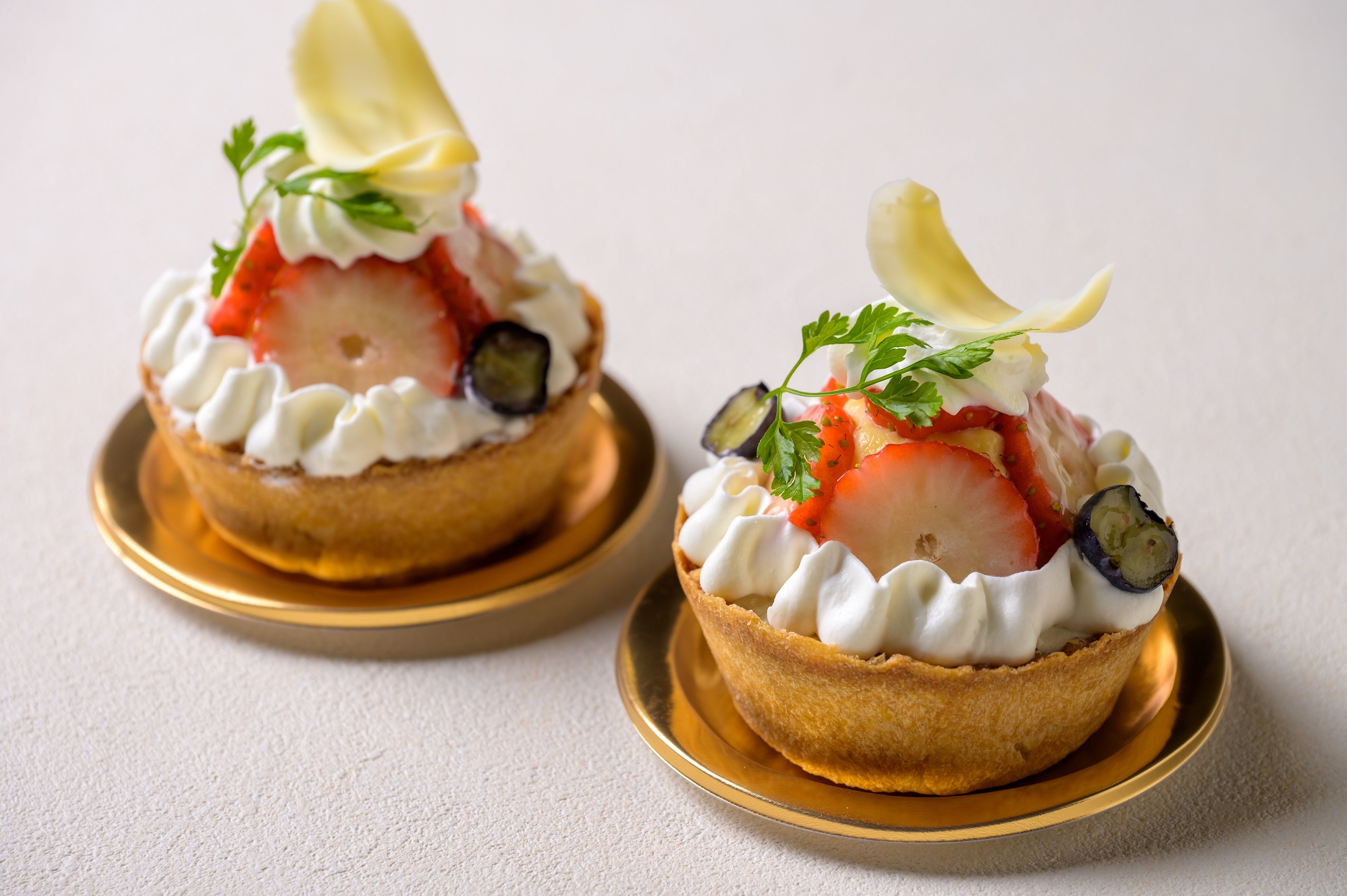 隙間なくたっぷりと敷き詰められた真っ赤な苺が見た目を華やかに引き立てます。苺のほど良い酸味と、優しい甘さのクリームとの絶妙の味わいと、タルト生地のサクサク食感も楽しめます。