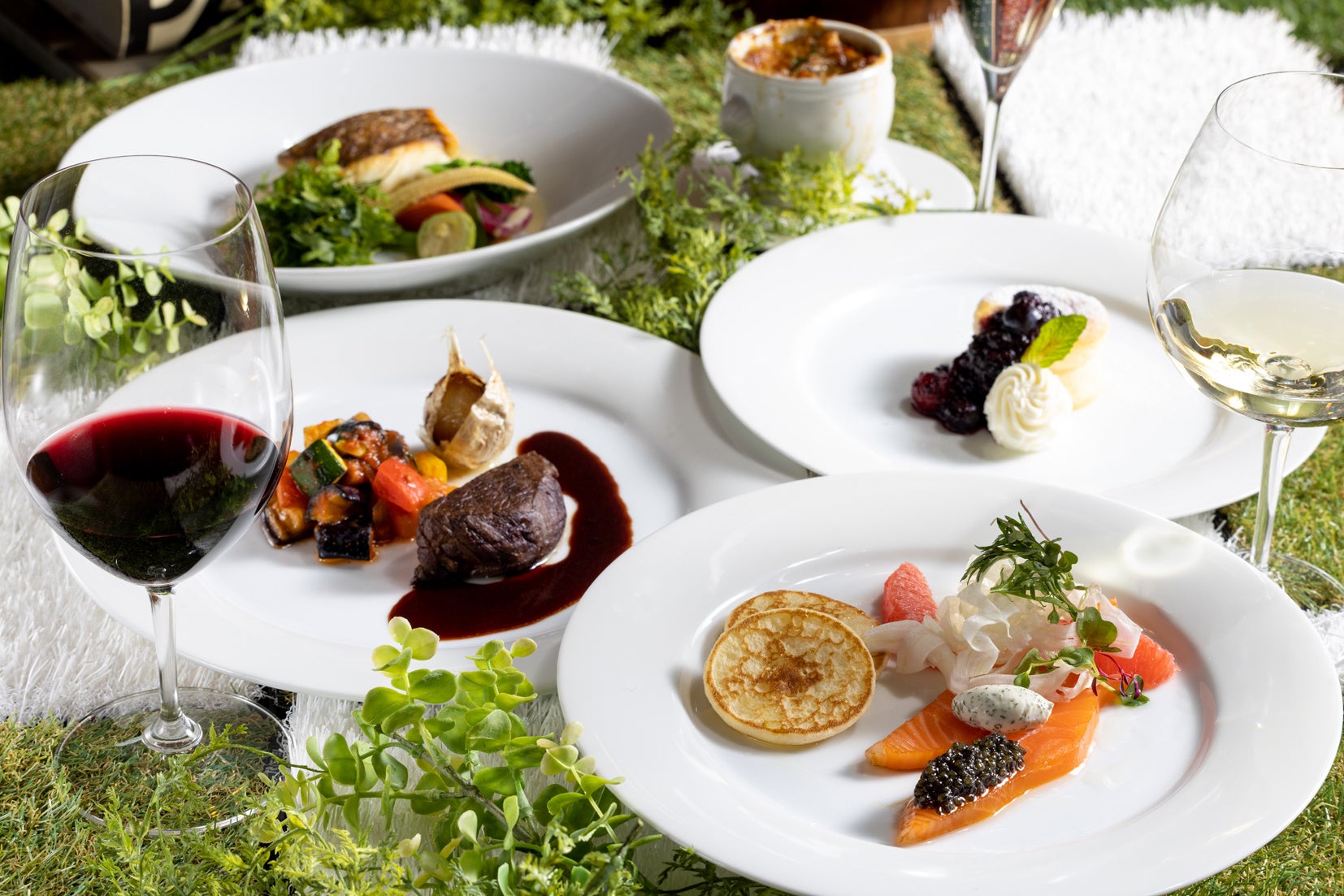 伝統的なビストロ料理をスタイリッシュにアレンジしたオールデイ ダイニング「フレンチ キッチン」では、20周年記念スペシャルセットメニューをご用意。旬の食材をつかい、季節ごとにメニューを変えてご提供している人気ディナーコースをアレンジし、さらにホテルのソムリエが厳選したワインとのペアリングでお楽しみいただける特別メニューです。エスカルゴをつかったアミューズから始まり、2種のメインディッシュのほか、開業以来不動の人気を誇る、オニオングラタンスープやホテル内キッチンでスモークした自家製スモークサーモンなど「フレンチ キッチン」のシグネチャーメニューをお楽しみいただけます。家族やご友人との特別なひと時をホテルのソムリエが厳選したワインとともにご堪能ください。