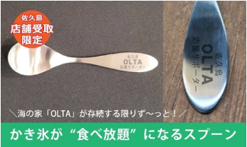 海の家「OLTA(オルタ)」で、かき氷が食べ放題になる「OLTA」ロゴ入りオリジナルスプーンです。