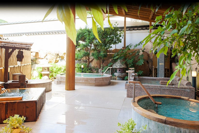 松の家 花泉では、桶風呂、釜風呂、ジェット風呂、打たせ湯、寝湯、陶器風呂、檜風呂などそれぞれ趣の異なる湯めぐりをお愉しみいただけます。