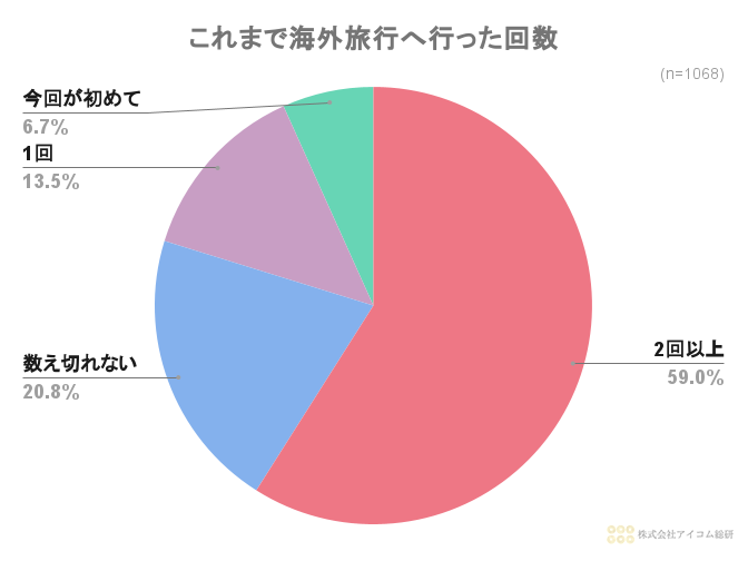 今回アンケートを実施した中で、回答された方のこれまでの海外旅行の経験数も実施。