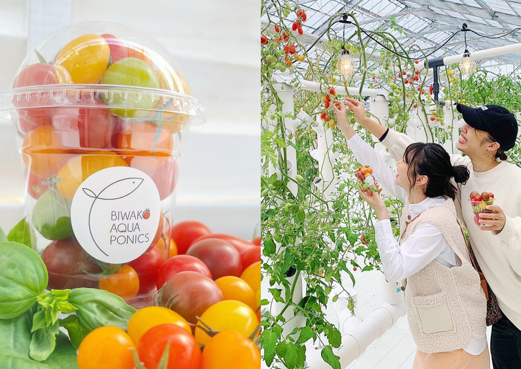 昨年7月に、グランドオープンした「BIWAKO AQUA PONICS」は、持続可能な究極の循環システムにより、季節や天候にも左右されずに施設見学をしながら“パーフェクトオーガニック”にこだわって栽培された、『トマト狩り』が楽しめる体験型農園となっています。さらに同年12月、施設内に『農園カフェ』がオープンし、ランチ・デザートなどの飲食はもちろんのこと、農園でその日の朝に収穫したフレッシュなカラフルトマトやバジルが堪能できる、『ピザ焼き体験』もお楽しみいただけるようになりました。
