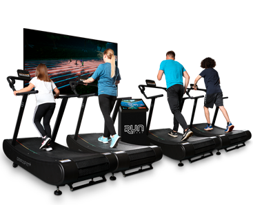 また、ひとつの“runBEAT”(ランビート)システムに2~8台のトレッドミルを繋げることができるため、多人数でのゲームも可能です。必要なスペースもトレッドミル二台で3m×3mと省スペースで導入できることも魅力の一つです。