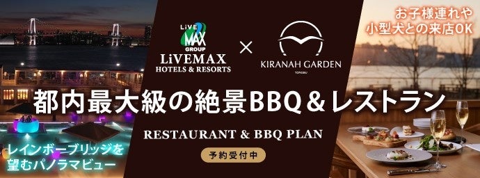 株式会社リブ・マックス(本社:東京都港区、代表取締役:有山 憲)は、ホテルリブマックス豊洲駅前にて、株式会社KIRANAH RESORT(読み:キラナリゾート、本社:東京都千代田区)が運営する、都内最大級のBBQ施設「キラナガーデン豊洲」と特別宿泊プランの販売を開始しました。