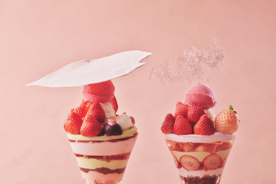 桜&いちごの和パフェxいちご&シャンパーニュの洋パフェ