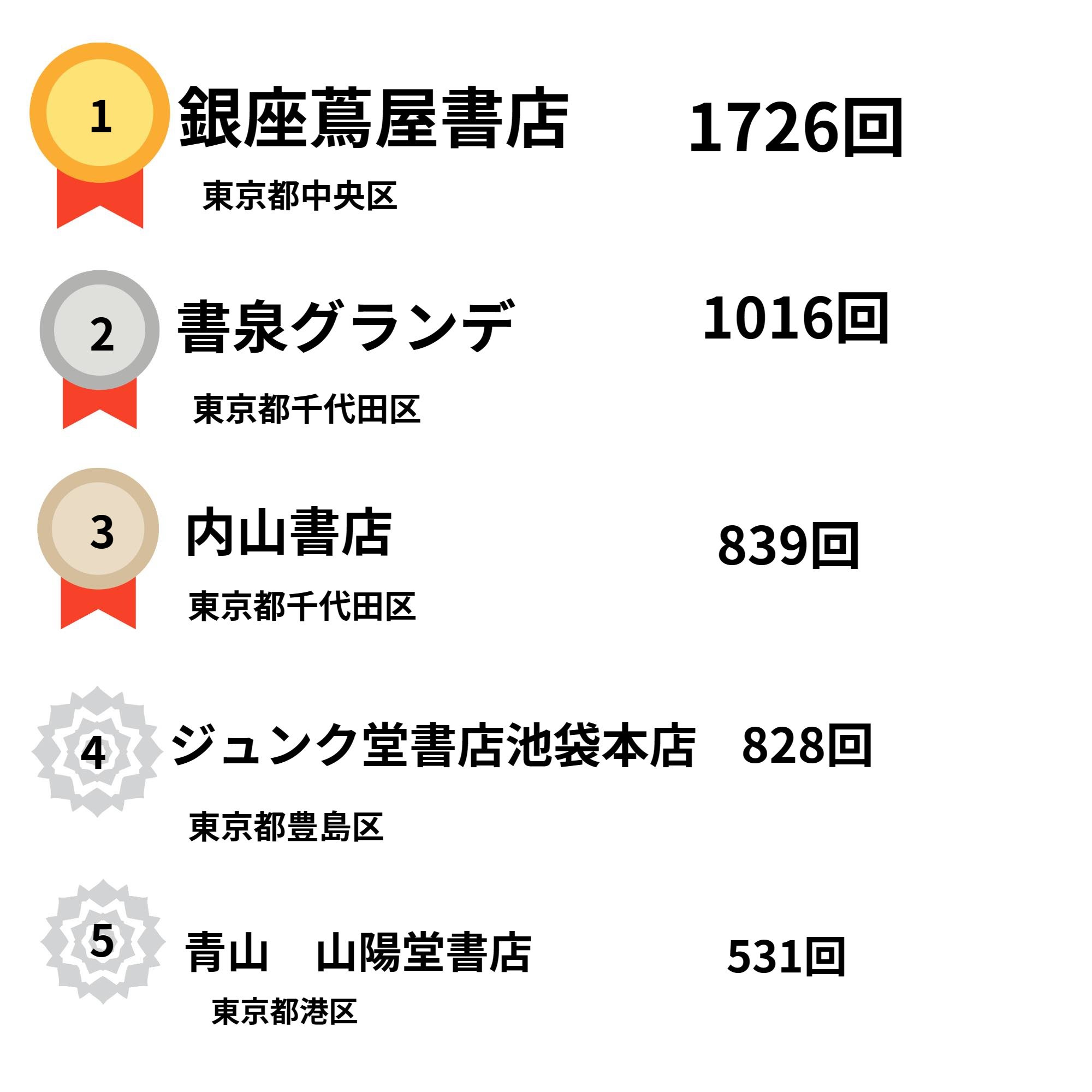 書店別 御書印押印数ランキング (2022年11月 御書印プロジェクト事務局調べ 押印数カウント実施店のみ)