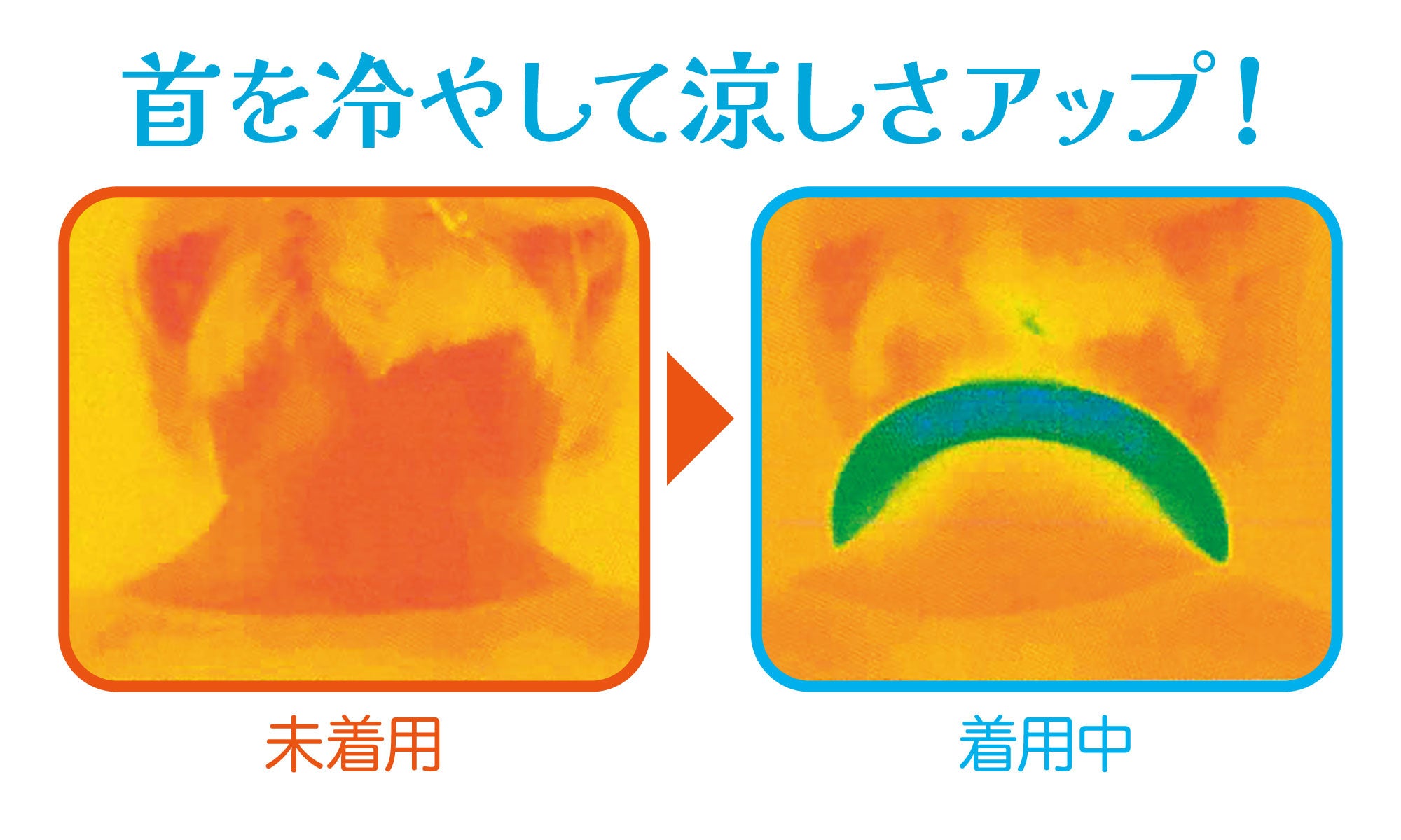 直接肌につけることで身体の熱を吸収し、首元から全身の熱をクールダウンしてくれます。