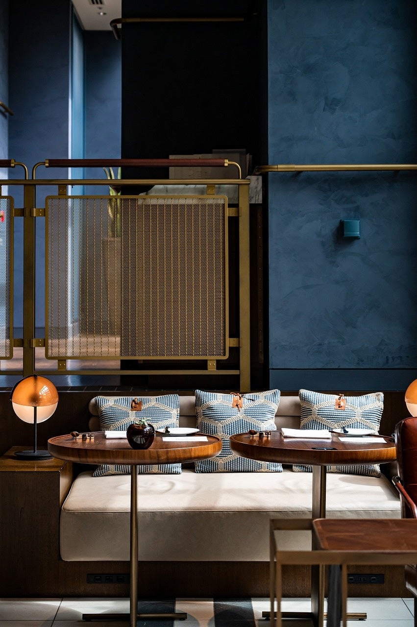 モダンブラッスリー・ディストリクト。ダイニング、バー、ラウンジエリアに