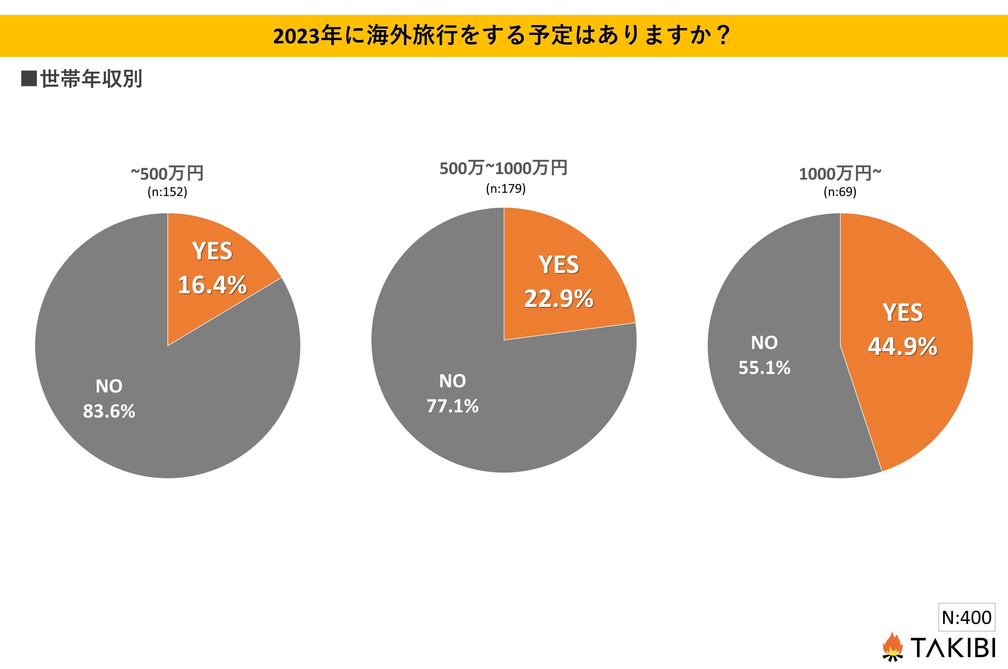 世帯年収が上がると、「海外旅行をする予定」と回答された方の比率も上がる結果となりました。