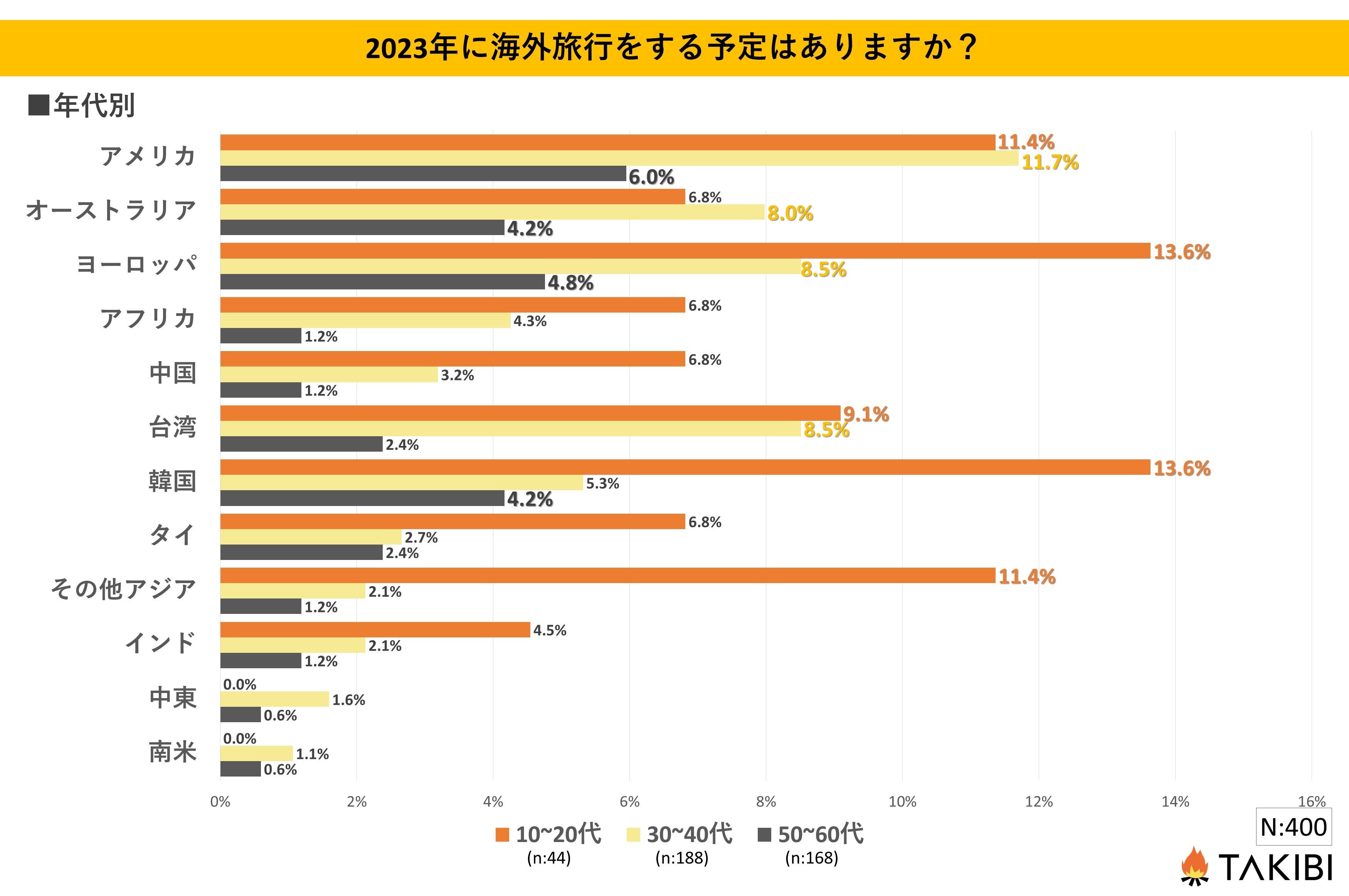 年代別に見ると、若年層の海外旅行意欲が高いことがわかりました。