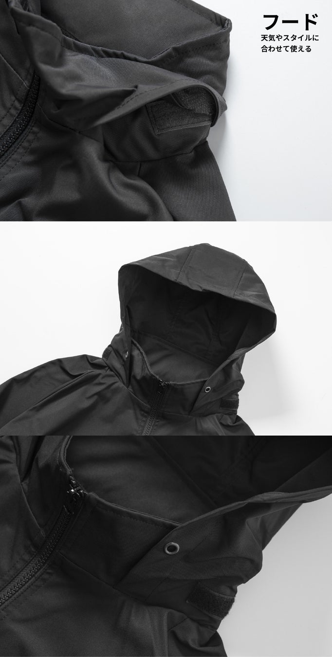 ●フード収納式で2スタイルをクールに着こなせる、実用的なメンズジャケット