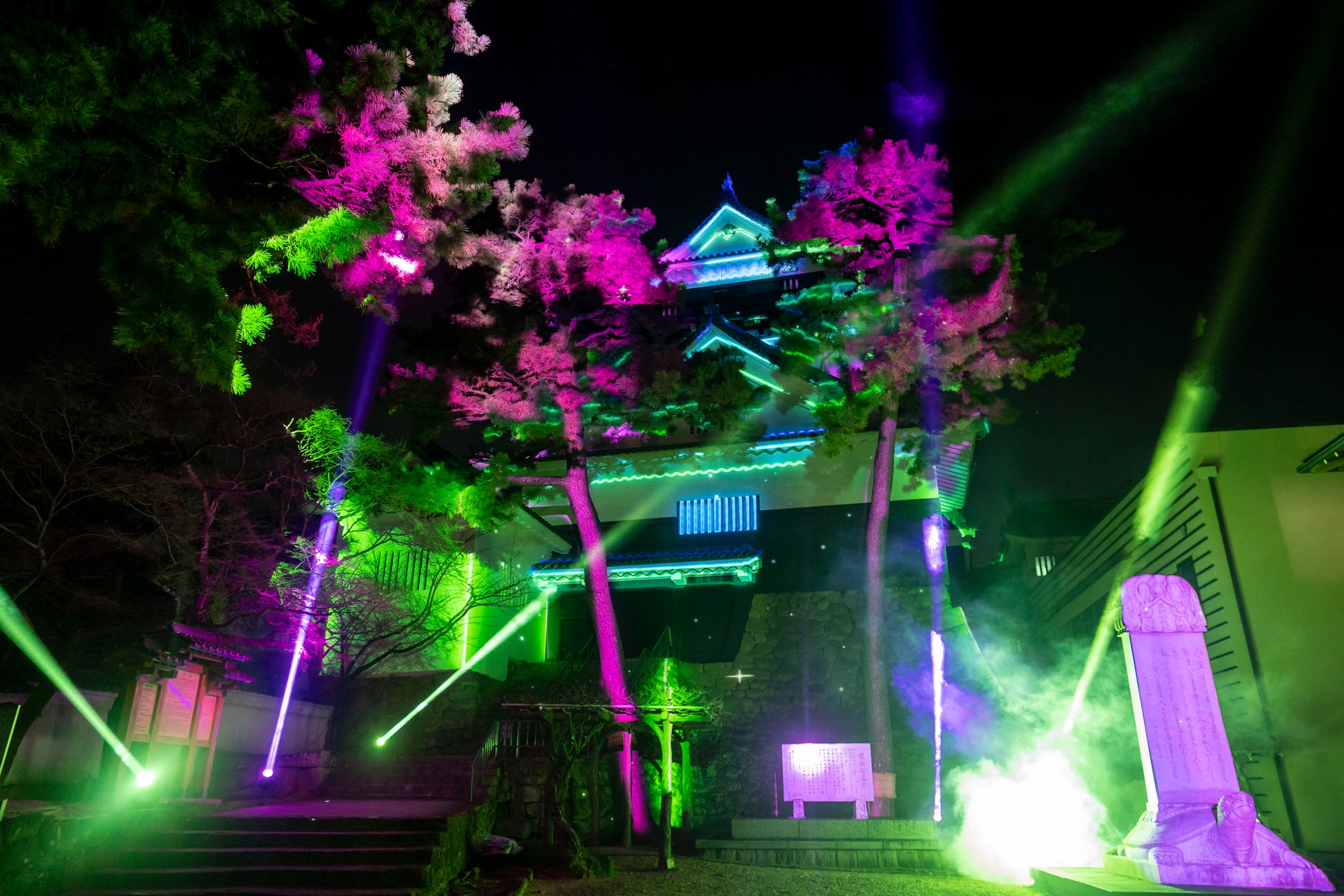 あわせて、プロジェクションマッピングと連動して、岡崎公園内のさまざまなスポットをデジタルライトアップで彩る「岡崎公園 デジタルライトアップ」を同時開催しました。