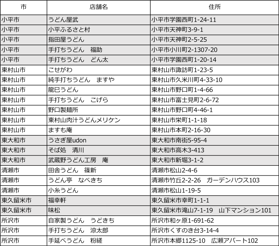 ◆参加店舗:小平市・東村山市・東大和市・清瀬市・東久留米市・所沢市計6市から23店舗(下記「参加店舗一覧」参照)