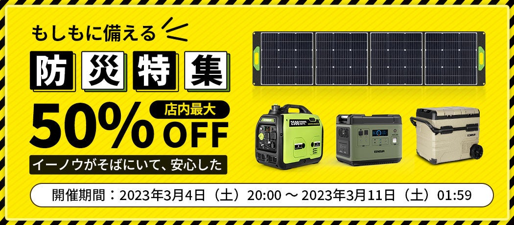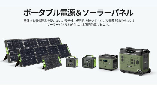 取扱い商品:ポータブル電源、ソーラーパネル、発電機、電動工具、照明器具、他