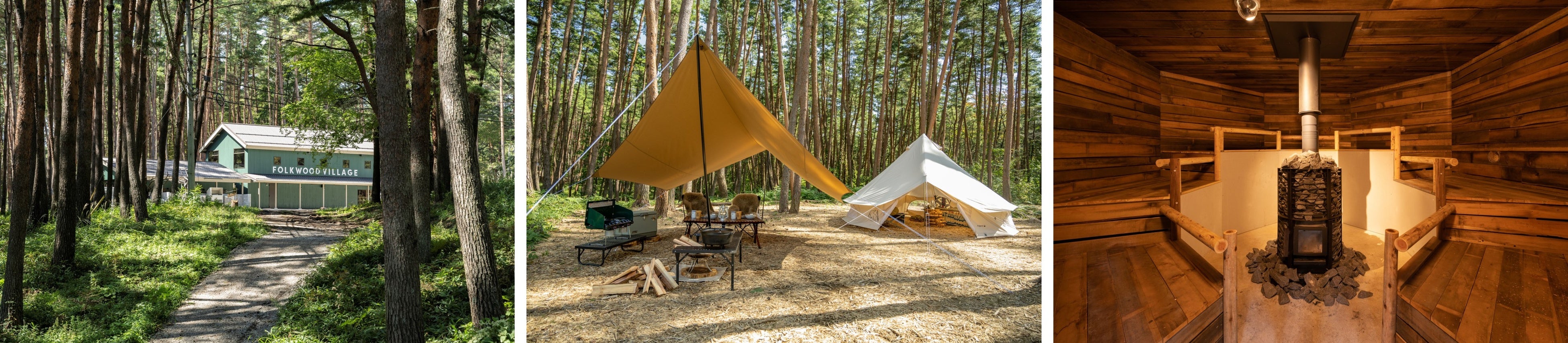 また、「neu.Room」ご利用の方には、オートキャンプサイトも1サイト付属しているほか、約18,000坪の広大な敷地で展開されるFOLKWOOD VILLAGE 八ヶ岳の様々なコンテンツをご利用いただけます。