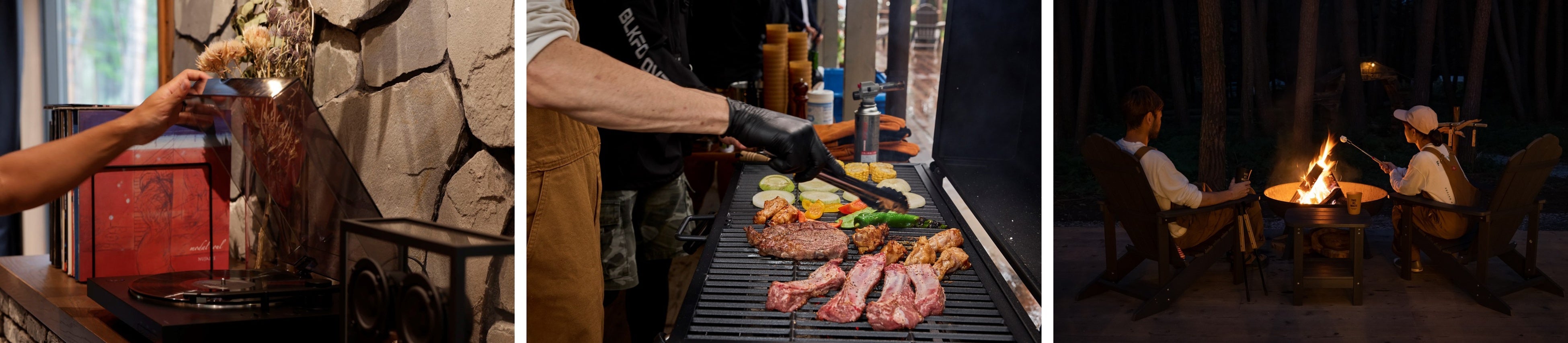 大自然の中で、BBQや焚火、キャンプ、アウトドアサウナ等を楽しみながら、チームビルディング研修やオフサイトミーティング、家族や友人との時間を楽しみながら働く等、ONとOFFの真ん中、ニュートラルなコミュニケーションを楽しめる職遊一体型の空間を提供します。