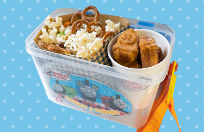 トーマスレストランでは、25周年の開幕に合わせ、人気の「トーマスデラックスプレート(スーベニアプレート付き)」がリニューアルするほか、「レベッカのお子様プレート(スーベニアプレート付き)」が新たに登場。オムライスやスパゲッティなどのメニューで盛りつけられたプレートは、お子さまも笑顔になること間違いなしです。さらに、トップハム・ハット卿夫人のおやつ屋さんでは、ポップコーンやプレッツェルなどのトレイルミックスとミニカステラがセットになったスペシャルボックスを販売いたします。ご家族での食べ歩きにぴったりの一品となっております。