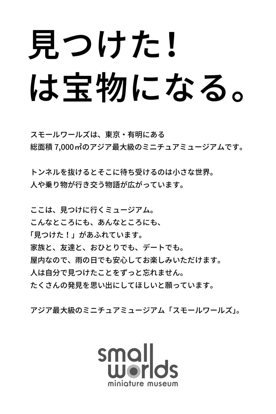 レストランメニューの刷新も行い、お子様からお年寄りまで楽しんでいただけるミニチュアミュージアムとして「スモールワールズ」は生まれ変わります。春休みやゴールデンウィークにミニチュアの魅力を発見いただき、良い思い出をお持ち帰りいただけるようリニューアルに向け準備を進めていきます。