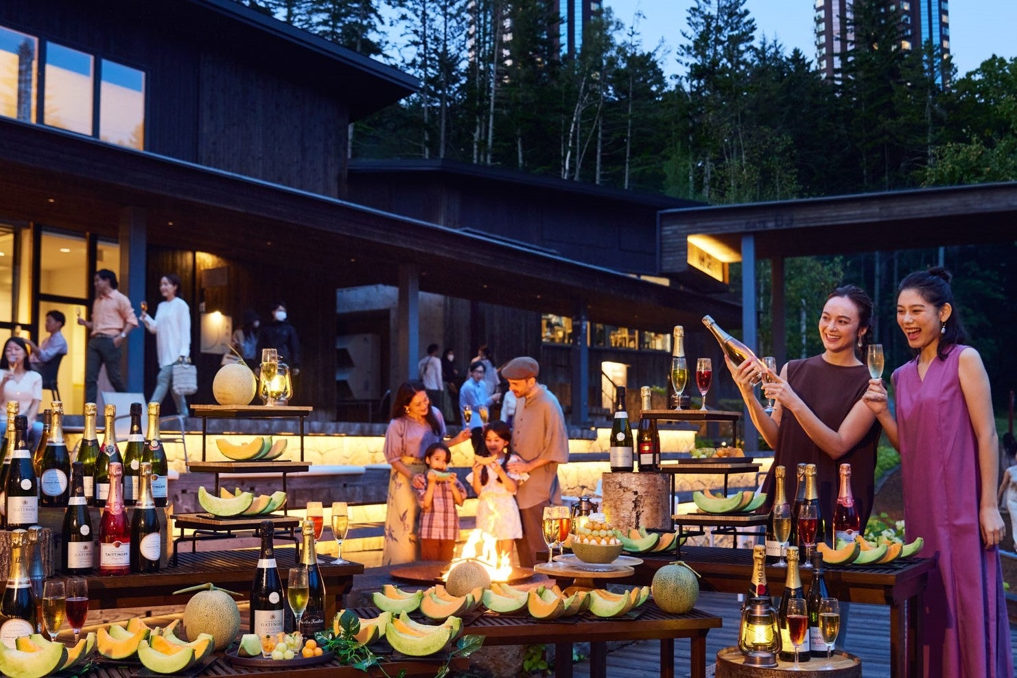 当リゾートでは2019年より、夏が旬のメロンとシャンパンの贅沢なマリアージュを楽しむ「メロンシャンパンフェス」を開催しています。5回目の開催となる今年は、メロンと合わせて食べるトッピングとして生ハム、モッツァレラチーズ、ソフトクリームを提供。メロンとシャンパンのマリアージュに加え、メロンの楽しみ方が広がります。夏夜の涼しい風を感じながら、優雅なひとときを過ごせます。