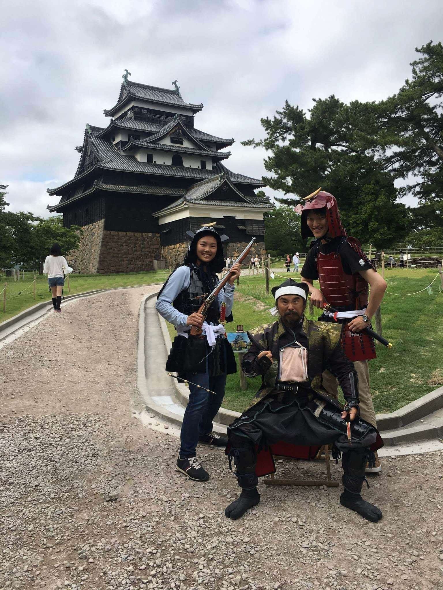 兜や陣羽織などを身に着ける撮影スポットを設置。まつえ若武者隊によるおもてなしと共に、
