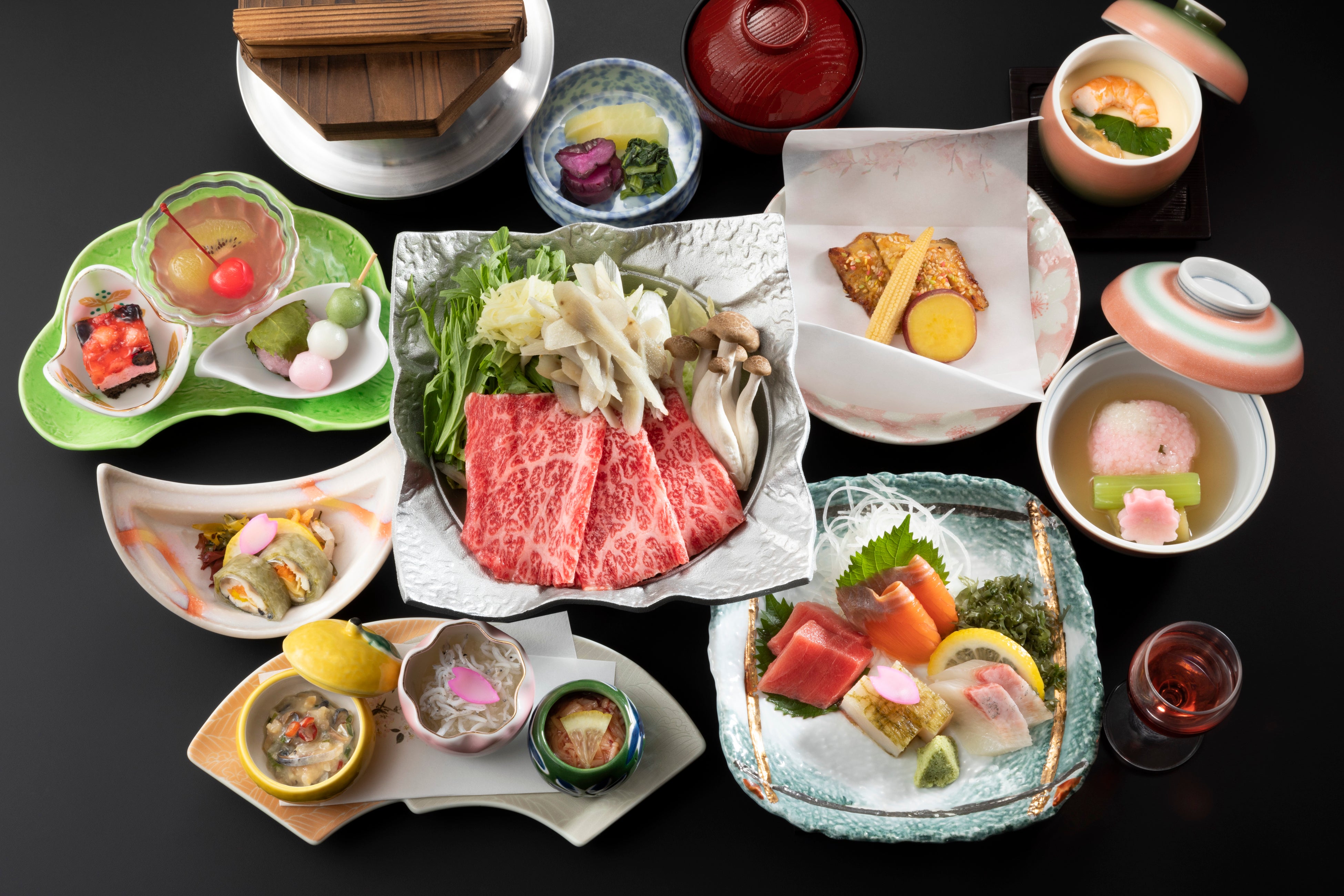 旅のくつろぎを大切にしていただくために、ご夕食をお部屋出しで提供しており、一品一品心を込めてつくられた会席料理を存分にお楽しみください。