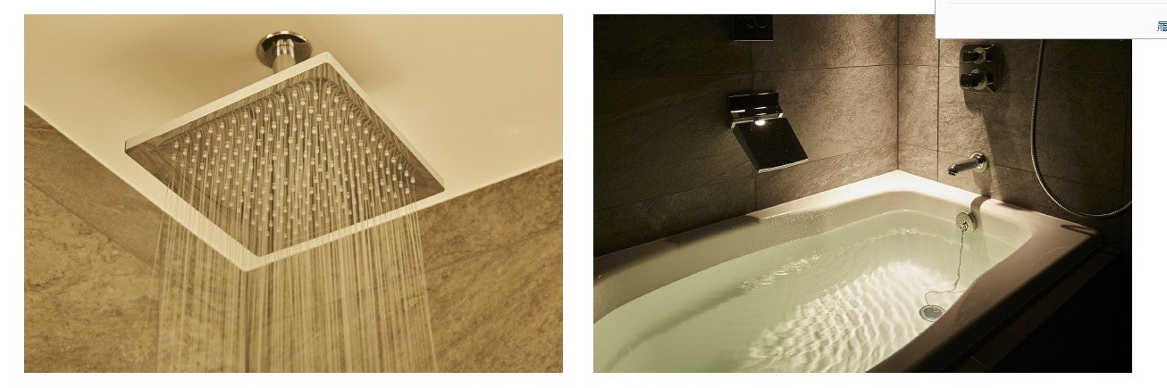 ユニットバスにはチラーを仕込み、サウナ上がりにキンキンの⽔⾵呂として活⽤いただけます。オーバーヘッドシャワーが浴槽の上に設置され、⽔⾵呂に⼊りながら冷たい15度の滝を浴びることができます。好きな⾳楽を流せるスピーカーや⽔⾯に波紋が浮かぶライトなどを組み合わせながら自分好みのサウナタイムを演出可能です。