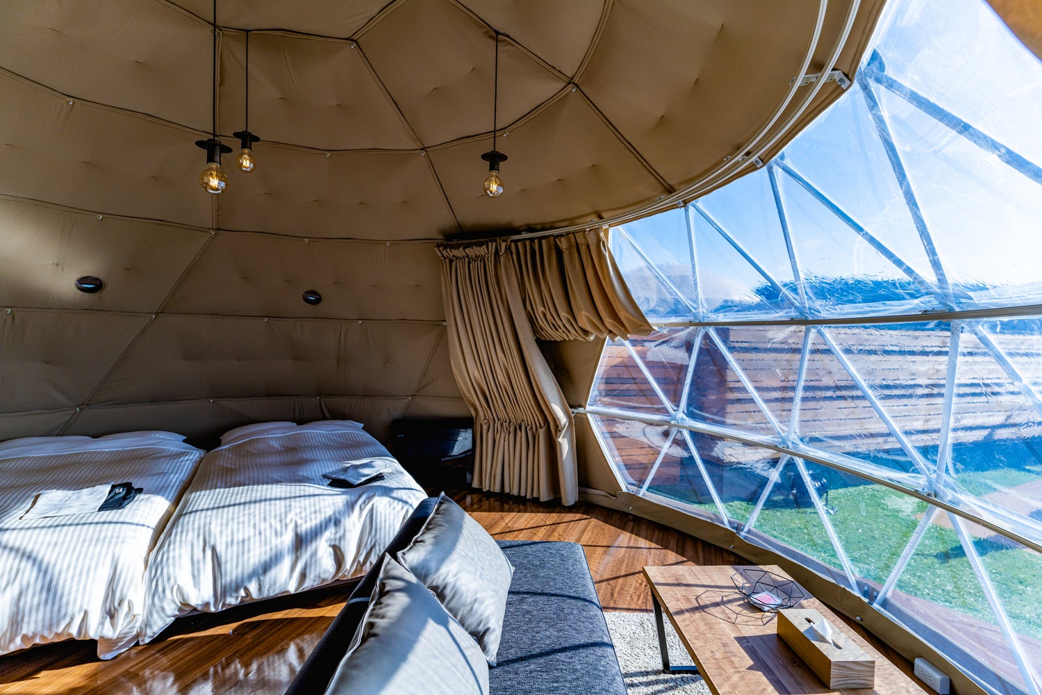1日2組限定のドームテントではカップルやご夫婦ではもちろん、