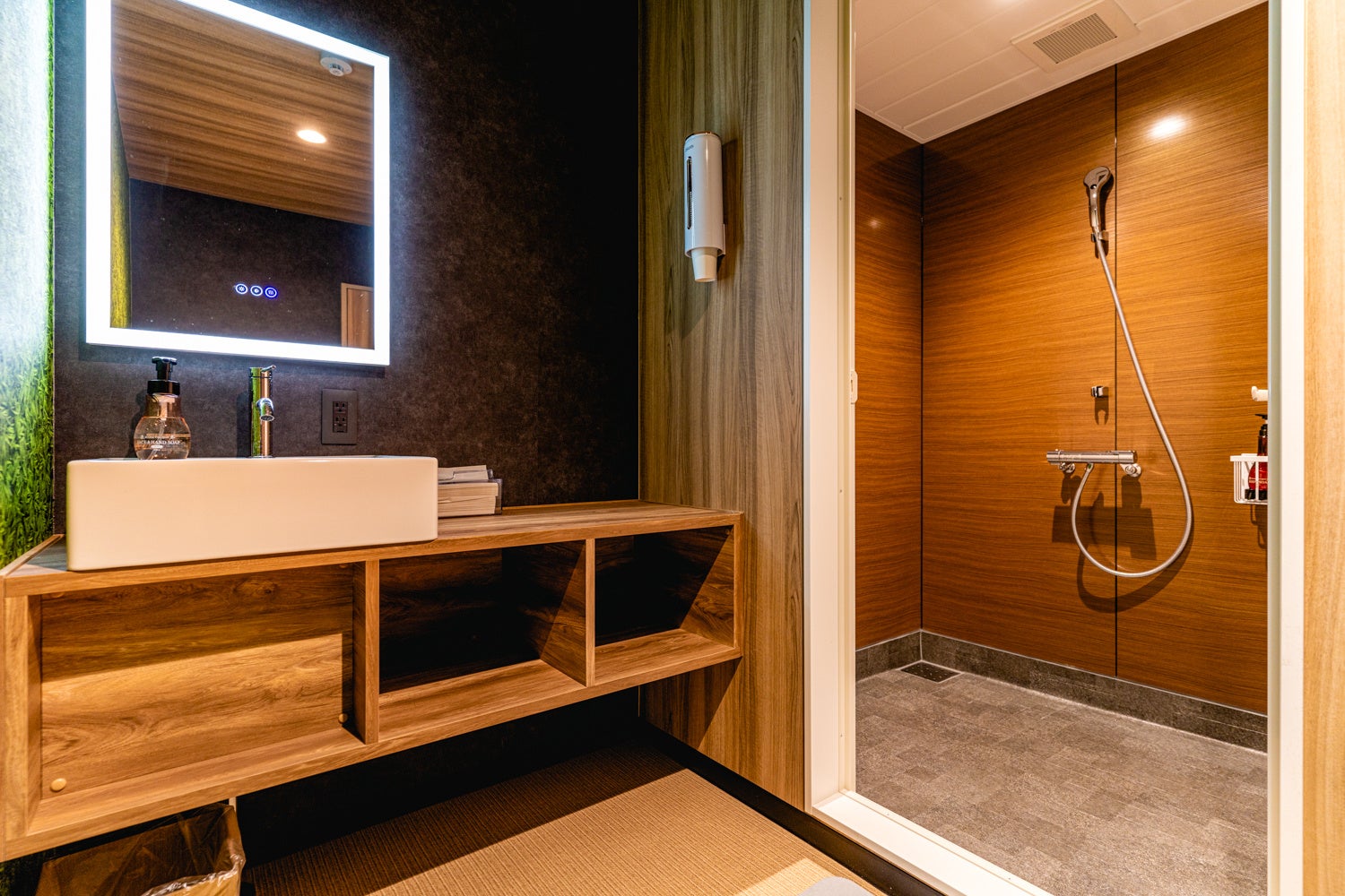 グランピング利用のお客様専用の24時間お使いいただけるサニタリルームをご用意しております。