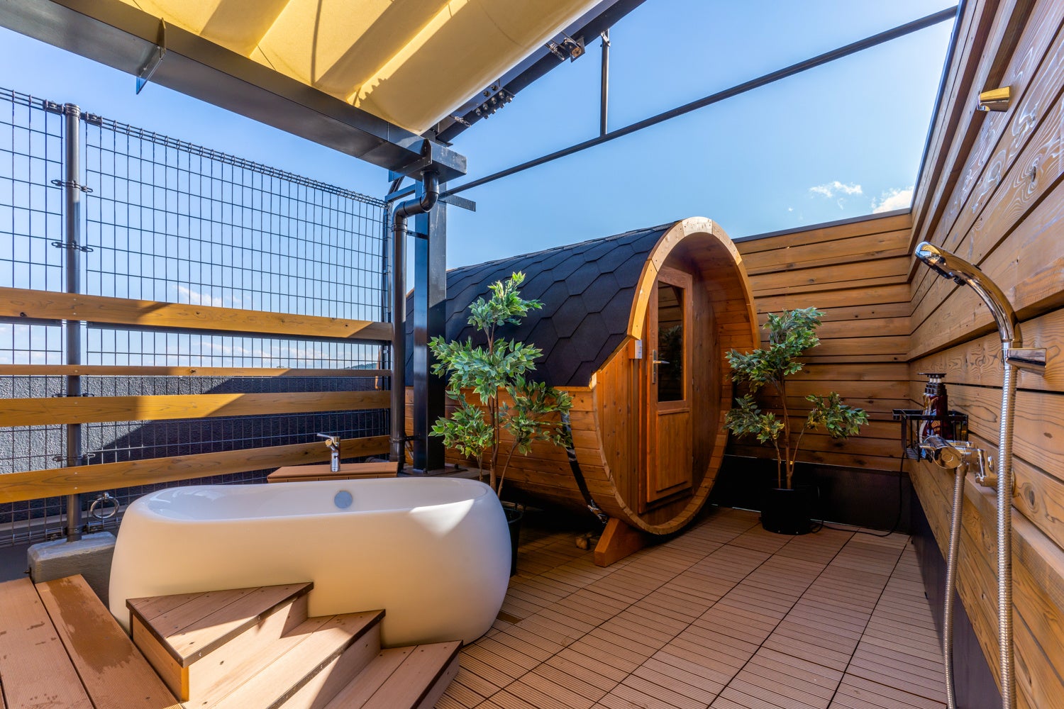 ◆開放的な屋上での“ととのい”体験 北欧風バレルサウナ