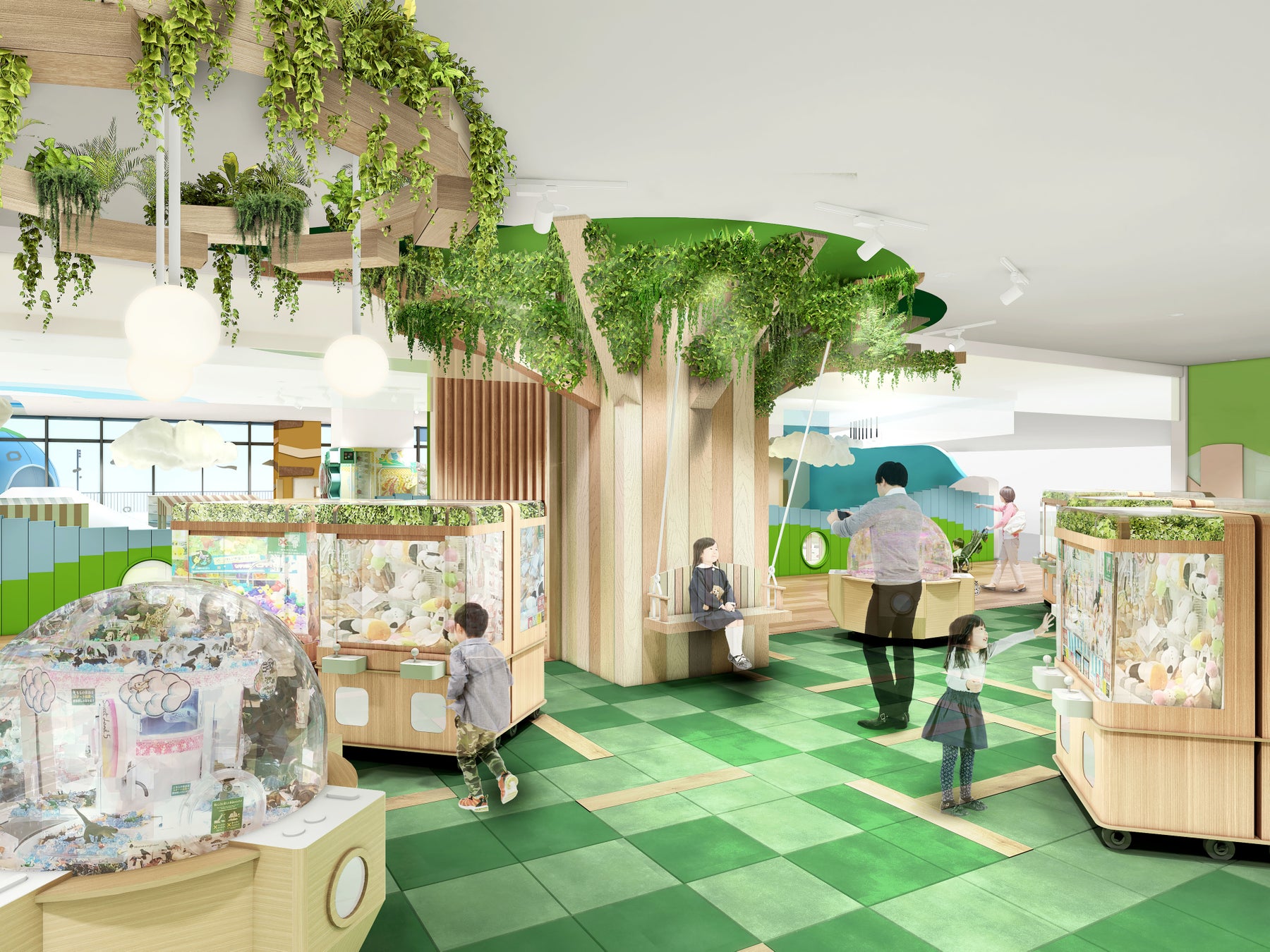 ・まるで公園で過ごすように、誰もがリラックスして楽しめる内装や休憩スペースを配した今までにない環境のゲームゾーン。※オープン日未定、3月中旬オープン予定