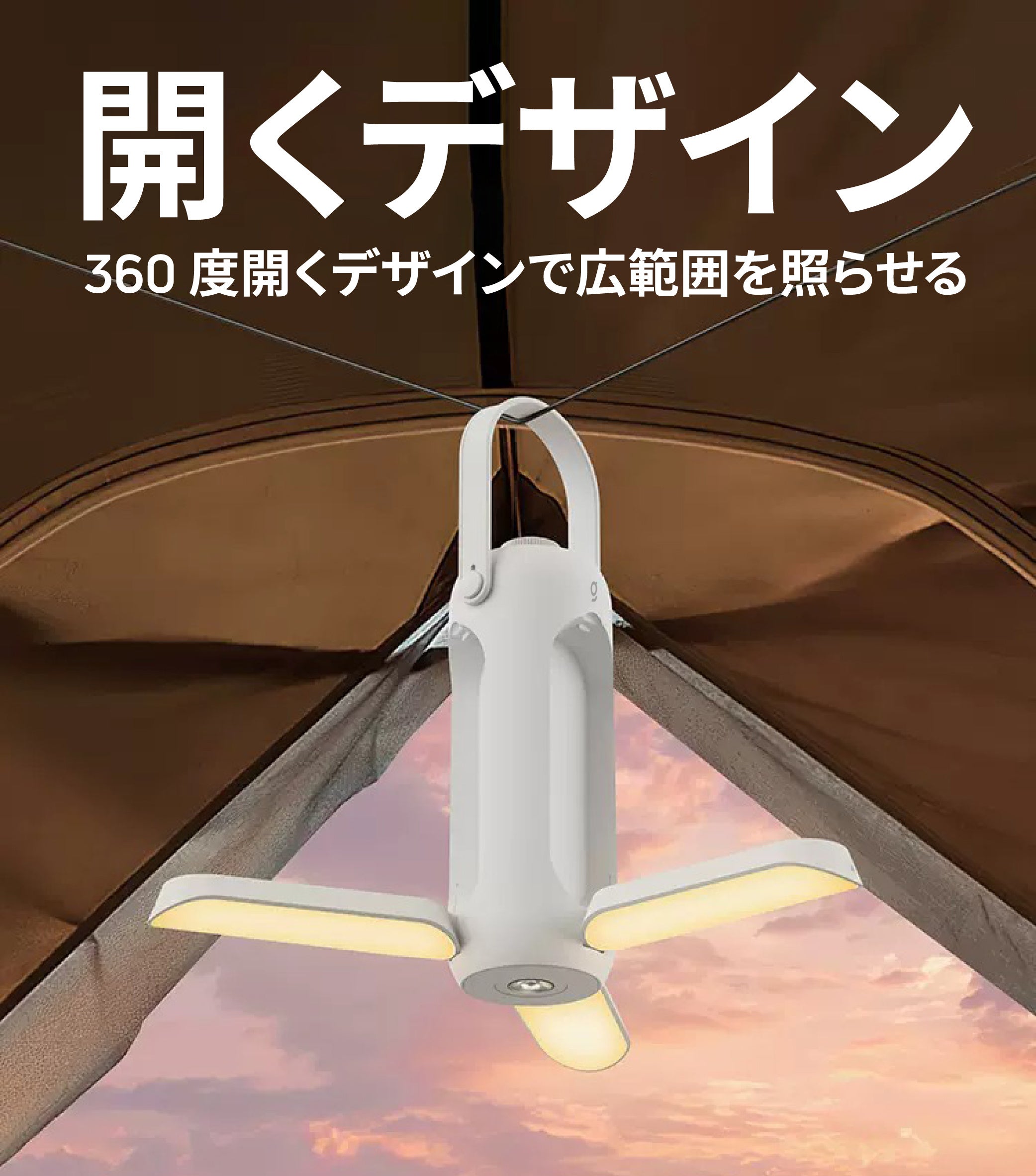 さらに広範囲を照らすことができるので、アウトドアでの使用に大活躍です。